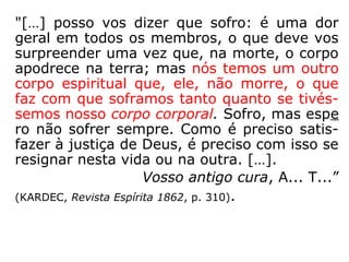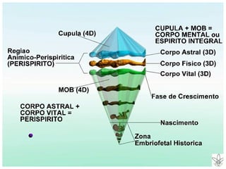 1. O documento discute a definição e aspectos gerais do perispírito, segundo o Espiritismo.