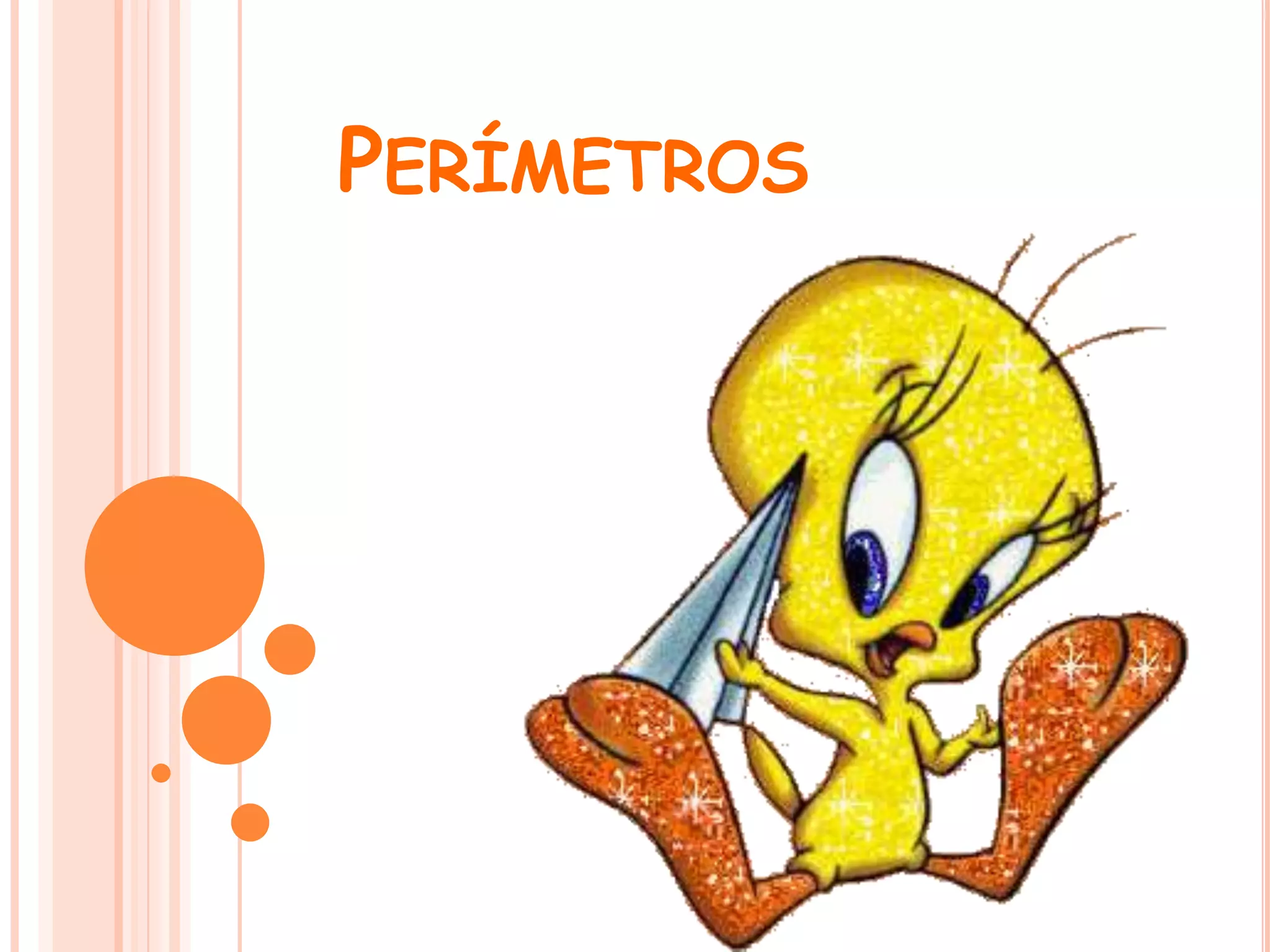 O documento apresenta as fórmulas para calcular o perímetro de quadrados, retângulos, triângulos e círculos, utilizando letras para representar os lados e raio, e explica que o diâmetro de um círculo é o dobro do raio.