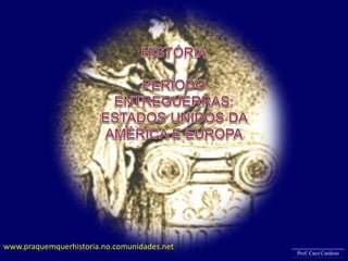 O documento descreve o período entre as guerras mundiais nos Estados Unidos e na Europa. A crise da Bolsa de Valores de Nova York em 1929 levou aos Estados Unidos à Grande Depressão, que teve efeitos globais. Na Europa, o fascismo italiano sob Mussolini e o nazismo alemão sob Hitler ascenderam em meio à instabilidade econômica e política no pós-guerra.