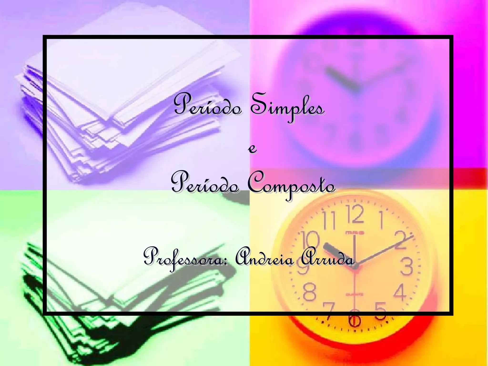 1) O documento discute os períodos simples e compostos, apresentando exemplos retirados de um texto literário.