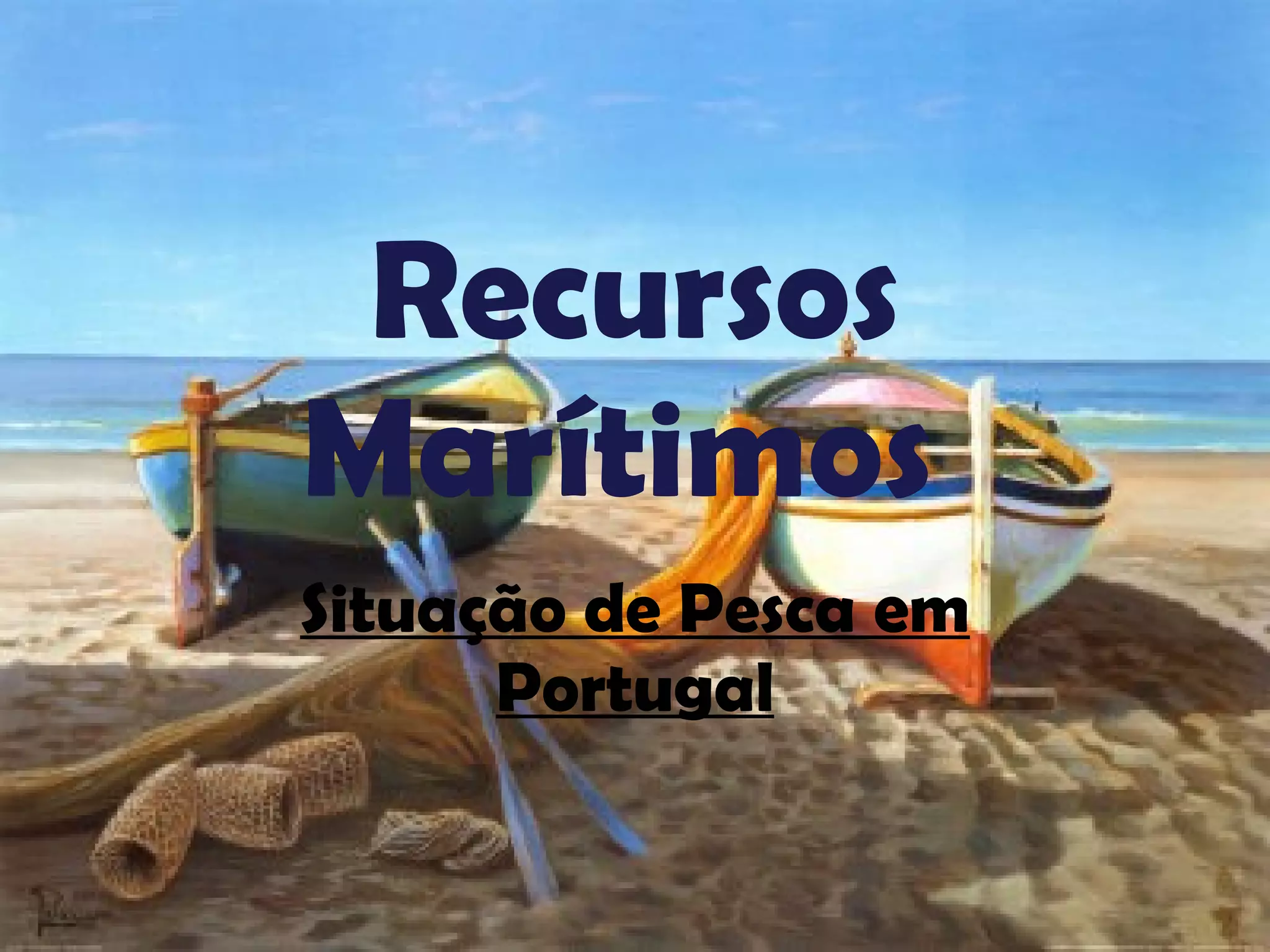 Este documento discute a situação da pesca em Portugal. Descreve como a pesca é desenvolvida no país e na UE, os níveis de consumo de peixe, o PIB relacionado à pesca e a descarga de peixe. Também discute as principais áreas de pesca para Portugal, os tipos de embarcações e pesca, e como a modernização da frota pesqueira melhorou a produtividade.