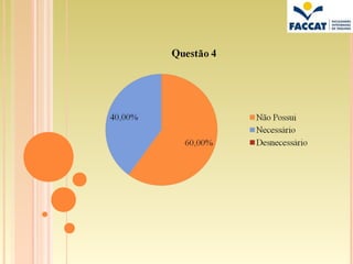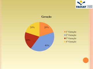 Este documento apresenta os resultados de uma pesquisa realizada com alunos de vários cursos para identificar em que geração de gestão da tecnologia as empresas onde trabalham se encontram. A maioria das empresas se encontra na 1a ou 2a geração, indicando que há espaço para mais inovação. A conclusão é que é preciso transformar empresas de gerações mais baixas em gerações mais altas, como a 3a ou 4a geração, para melhorar a inovação.