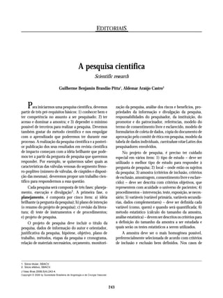 Este documento discute os três principais requisitos para realizar uma pesquisa científica: conhecimento do assunto, acesso à amostra e independência de terceiros. Também descreve as três fases de uma pesquisa - planejamento, execução e divulgação - e enfatiza a importância da publicação dos resultados.
