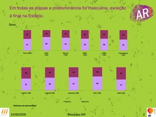 Uma pesquisa sobre o evento AR! mostrou altos níveis de satisfação com a organização, modalidades, locais e identidade visual. A maioria quer participar novamente e assistir ao evento no futuro. Homens e mulheres tiveram avaliações semelhantes, exceto sobre as modalidades esportivas, com homens preferindo basquete e mulheres escalada. O evento foi bem-sucedido e incentivará a prática esportiva nas escolas.