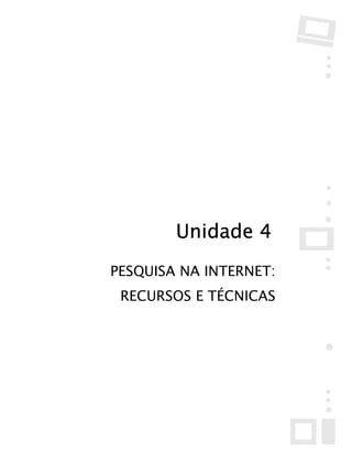 Este documento fornece dicas para pesquisas na internet, incluindo estratégias de pesquisa e ferramentas como mecanismos de busca. Ele explica como URLs funcionam e lista alguns dos principais sites de busca como Google, Yahoo e AltaVista. O documento também discute equívocos comuns sobre pesquisas na internet.