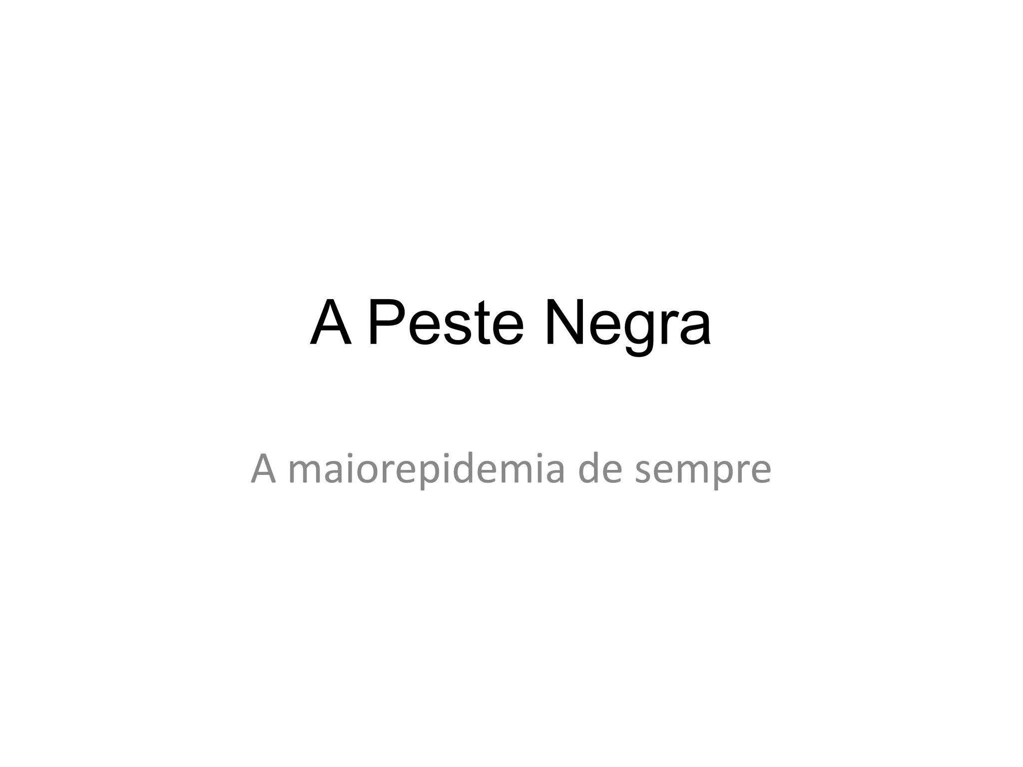 A Peste Negra foi uma pandemia do século XIV causada pela bactéria Yersinia pestis que matou cerca de um terço da população européia. Originou-se na Ásia e espalhou-se para a Europa através de pulgas infectadas, deixando cidades e campos despovoados. Em Portugal, apareceu em 1348 e matou entre um terço e metade da população.