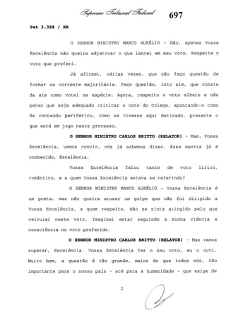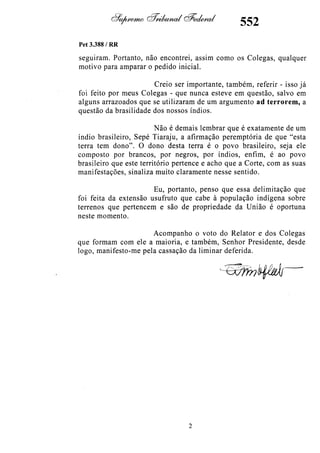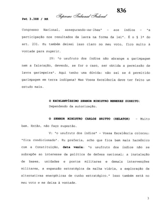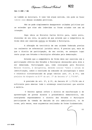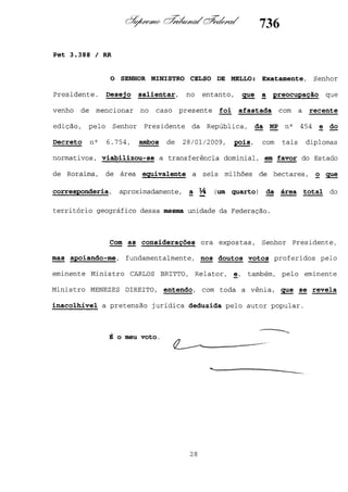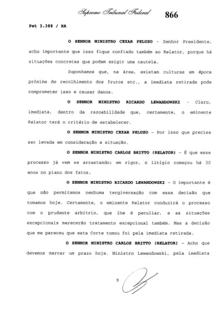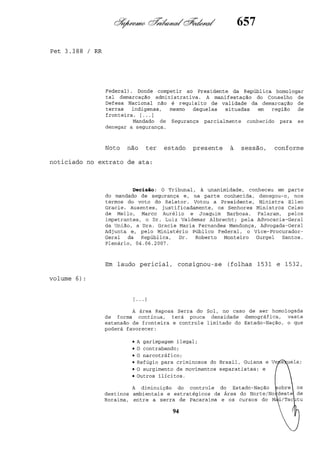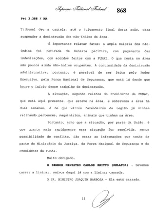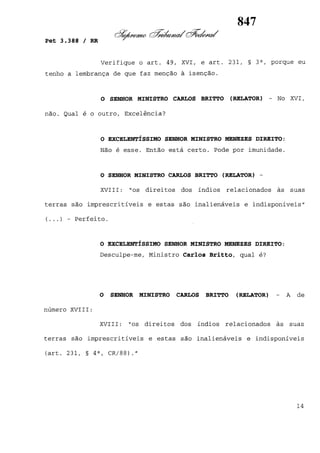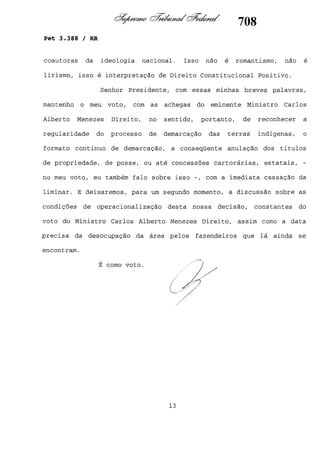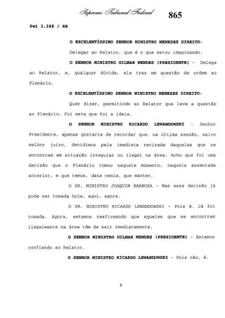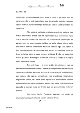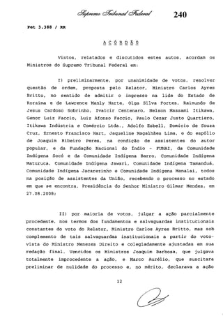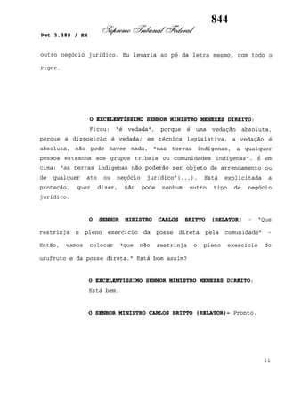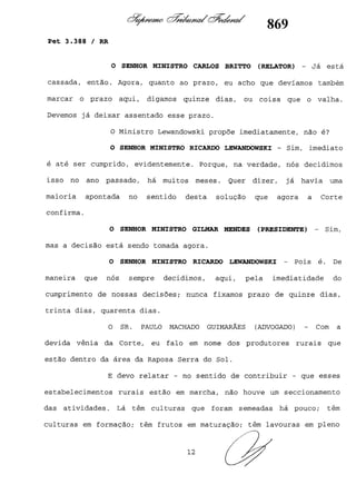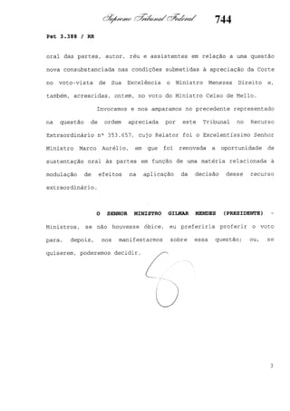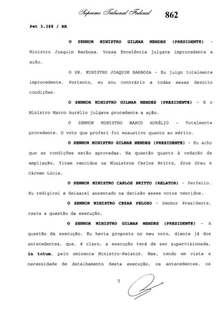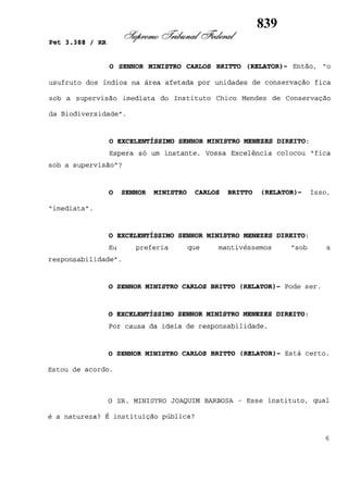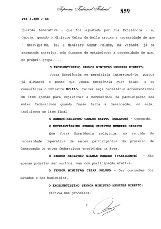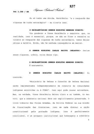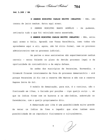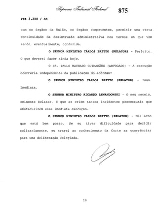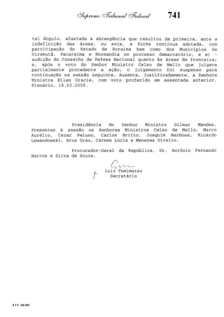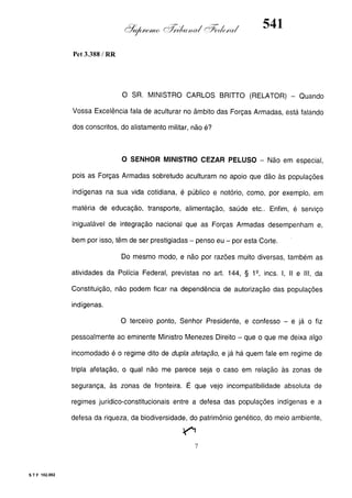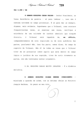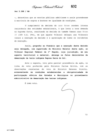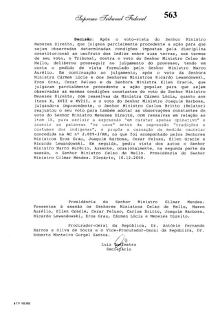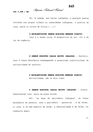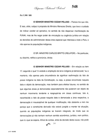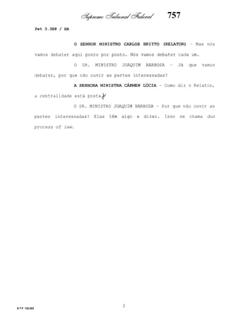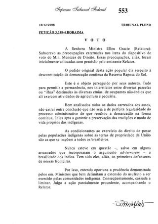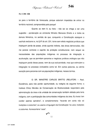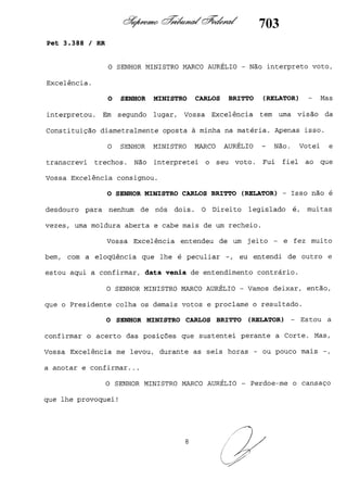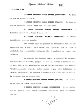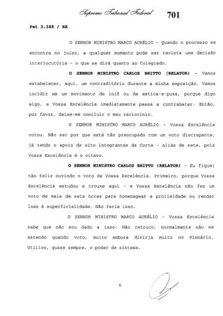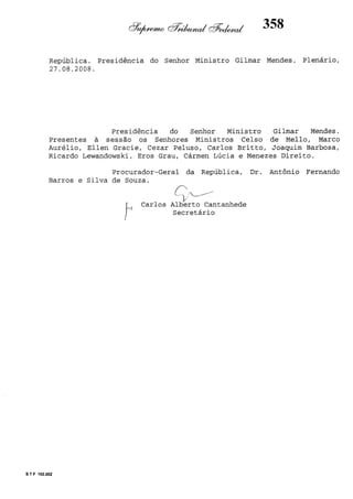 Este documento contém as atas e votos de vários ministros do Supremo Tribunal Federal brasileiro sobre um caso específico. Inclui os relatórios, votos, debates e decisões de ministros como Britto, Lewandowski, Barbossa, Lúcia, Gilmar Mendes e Celso de Mello.