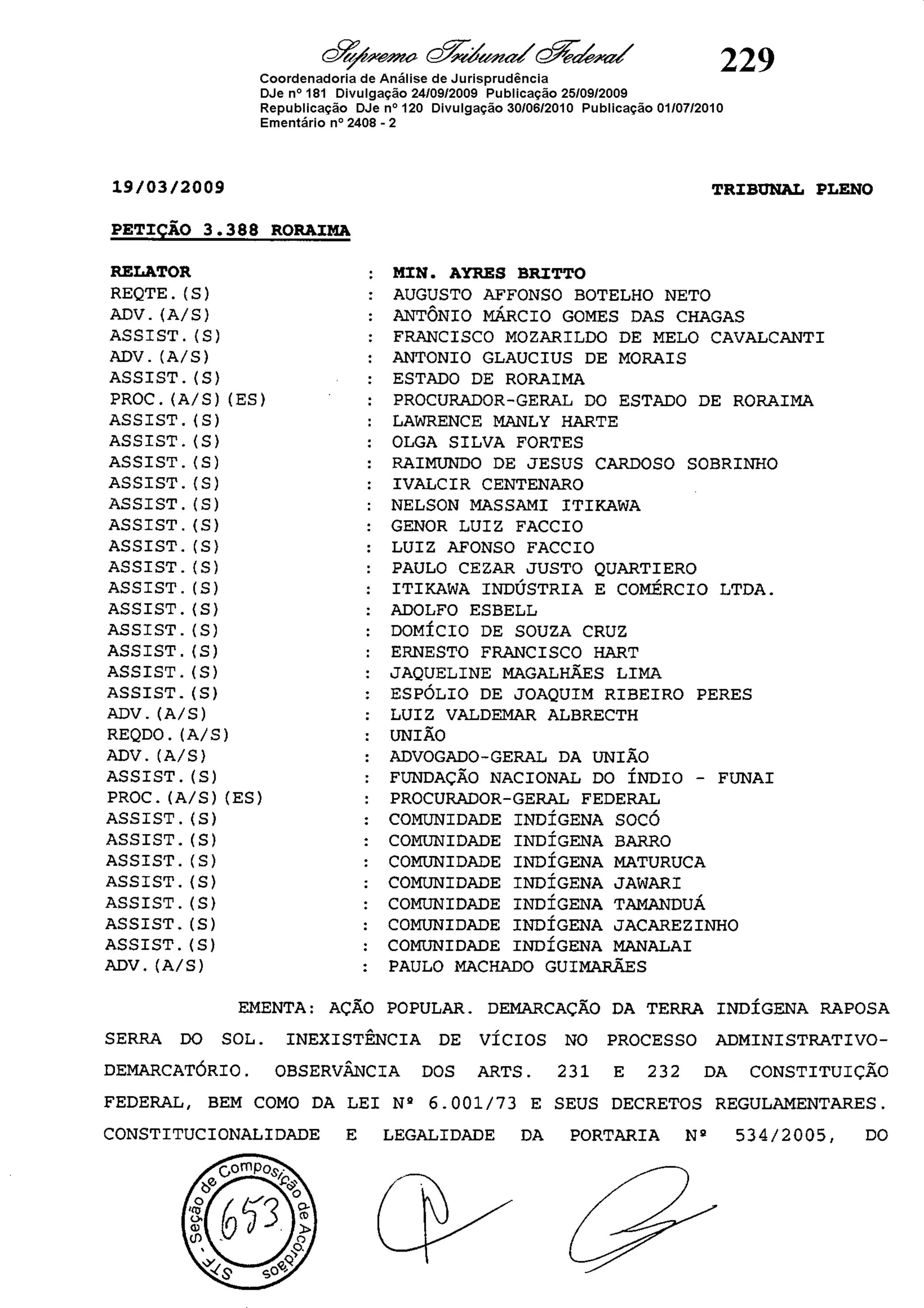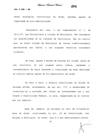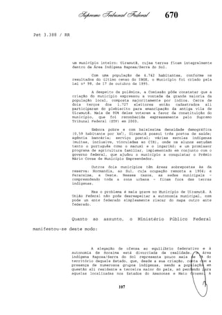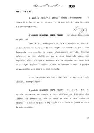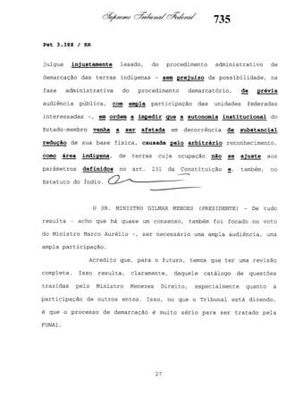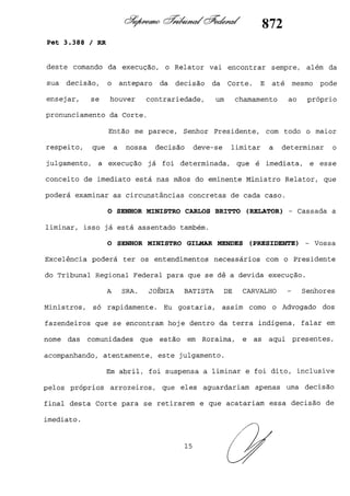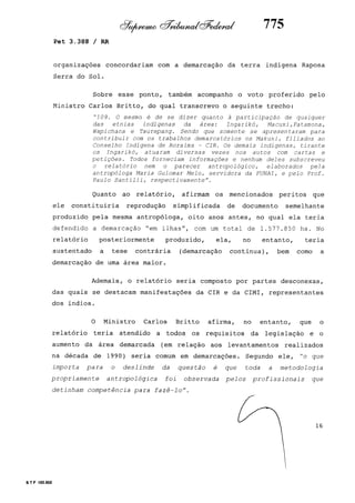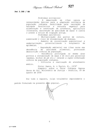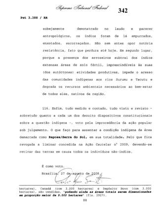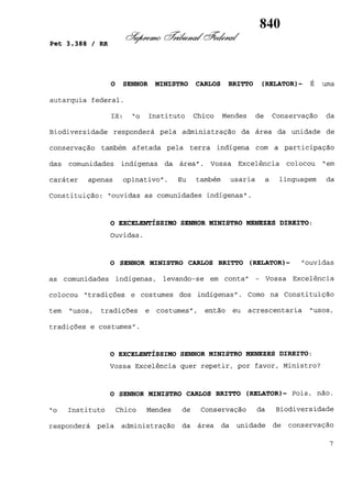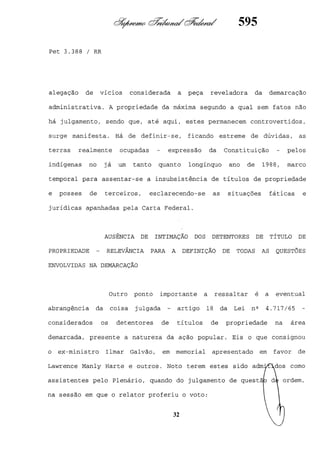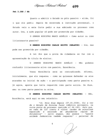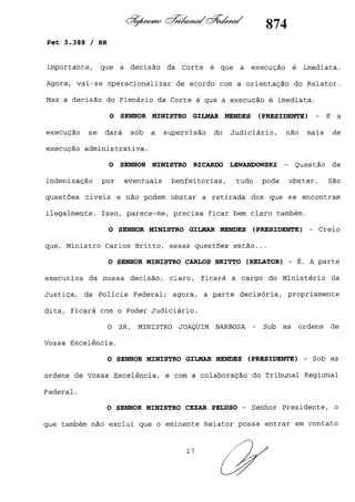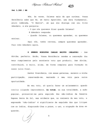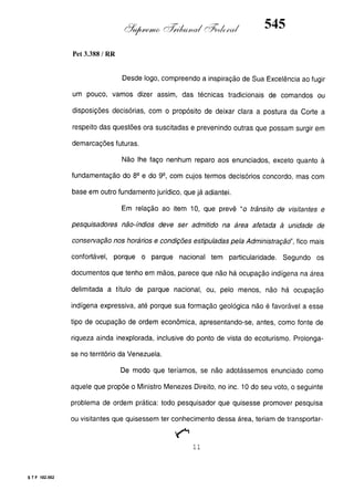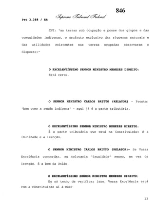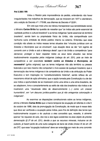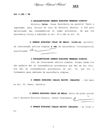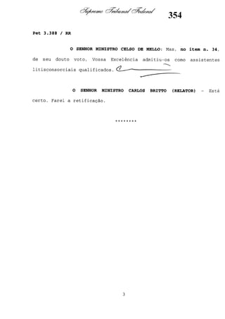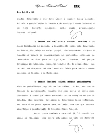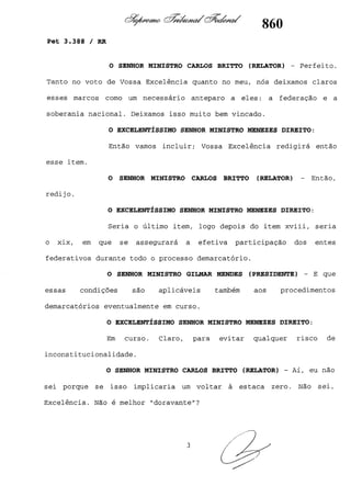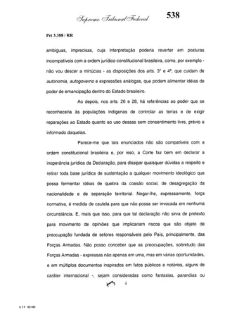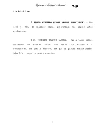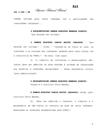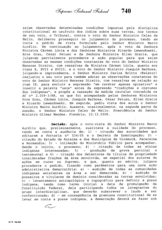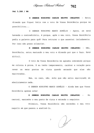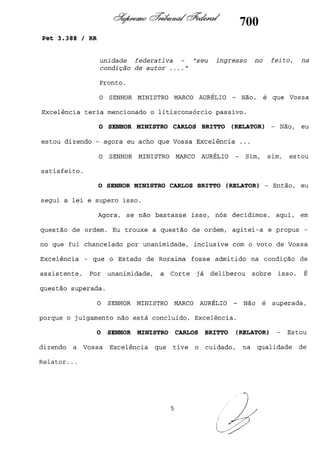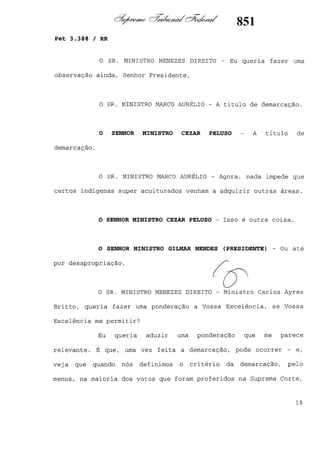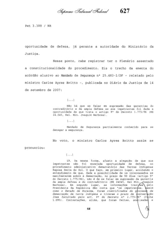 Este documento contém as atas e votos de vários ministros do Supremo Tribunal Federal brasileiro sobre um caso específico. Inclui os relatórios, votos, debates e decisões de ministros como Britto, Lewandowski, Barbossa, Lúcia, Gilmar Mendes e Celso de Mello.