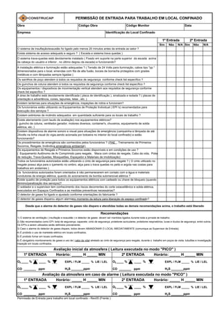 3) A permissão é válida para duas entradas e deve ser cancelada caso ocorra qualquer anormalidade que determine o abandono do local confinado.
