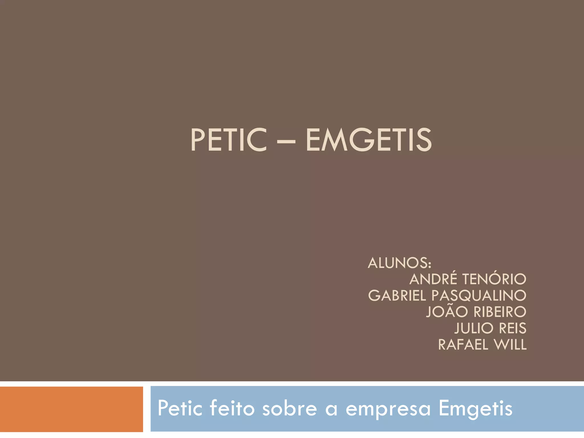 O documento apresenta a empresa Emgetis, descrevendo sua missão, visão e valores. Também fornece detalhes sobre o hardware, software, pessoas, dados e telecomunicações da empresa, além de sugestões para melhorias em cada área.