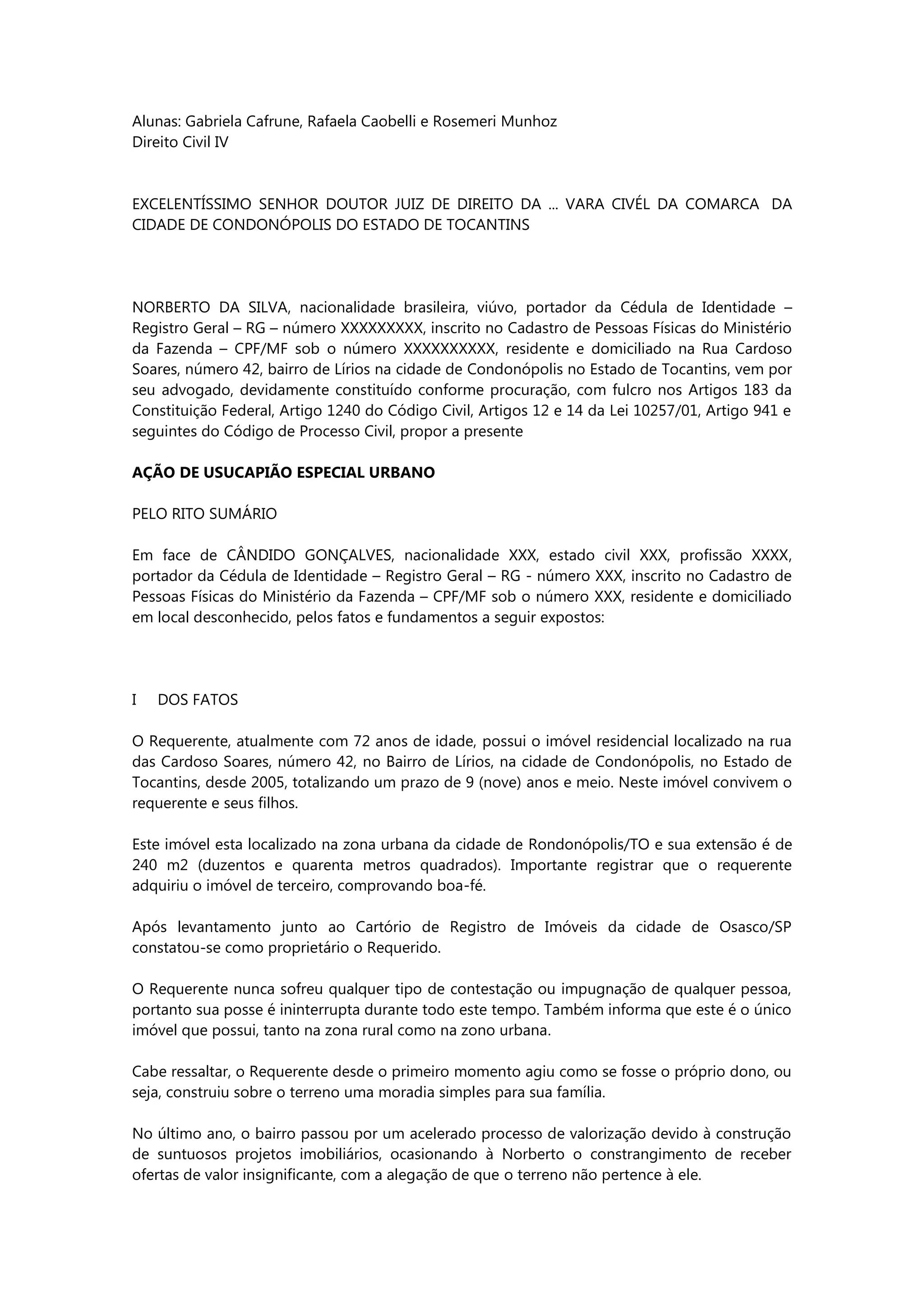 Norberto da Silva move ação de usucapião especial urbano para obter o domínio do imóvel onde reside há 9 anos e meio. O imóvel está localizado na zona urbana de Condonópolis/TO, tem 240m2 e Norberto o adquiriu de boa-fé, agindo como proprietário desde então. Ele preenche todos os requisitos legais para a usucapião, contudo o imóvel consta em nome de terceiro, Cândido Gonçalves.