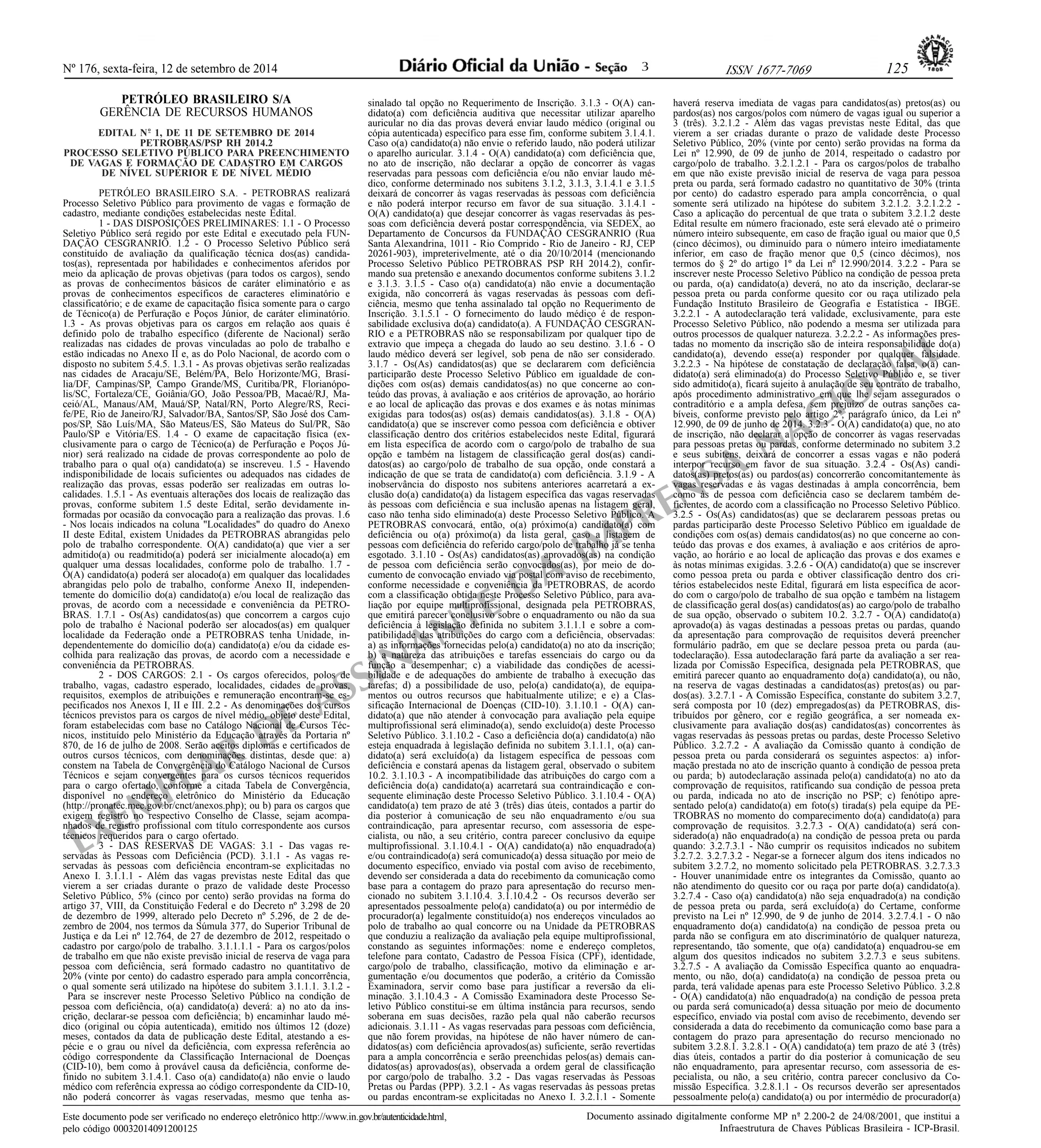 Este documento anuncia um processo seletivo público da Petrobras para preenchimento de vagas e formação de cadastro em cargos de nível superior e médio. O processo incluirá provas objetivas de conhecimentos básicos e específicos para avaliar a qualificação dos candidatos, e exame de capacidade física para o cargo de Técnico de Perfuração e Poços Júnior. O edital detalha os cargos disponíveis, requisitos, localidades e reservas de vagas, incluindo para pessoas com deficiência.