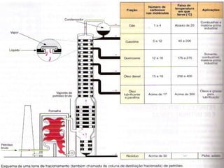 2) O processo de extração, refino e classificação do petróleo em frações como gasolina