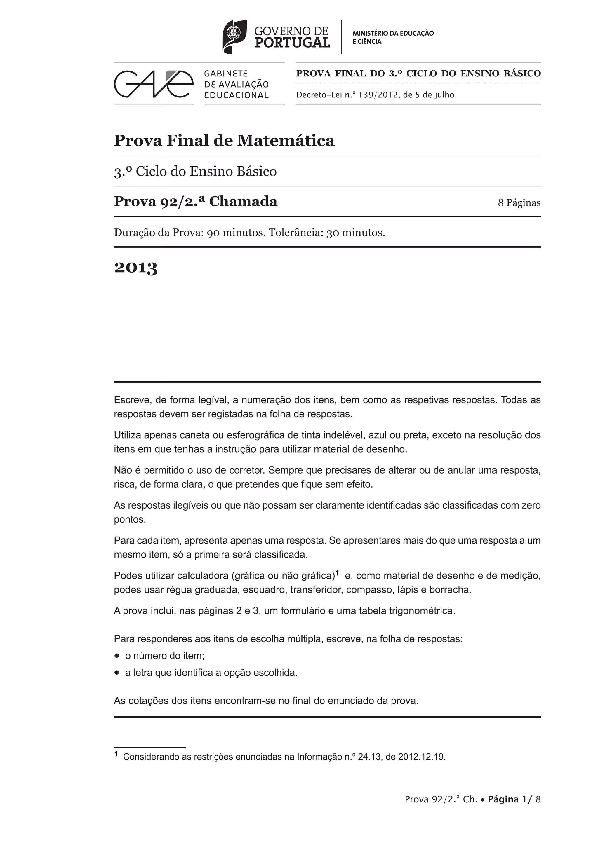 Prova 92/2.ª Ch. • Página 1/ 8