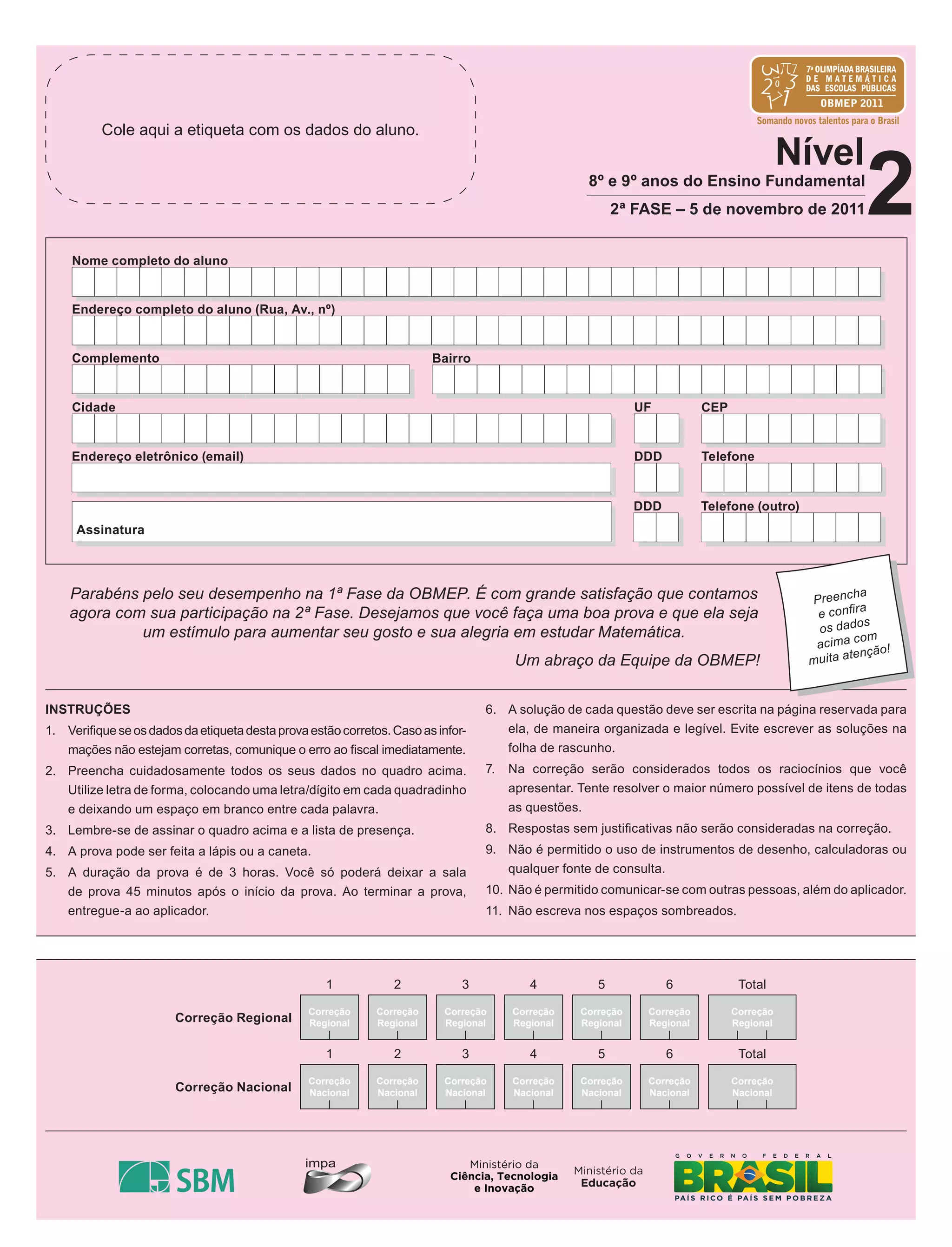 1. As instruções orientam um aluno a preencher corretamente os dados em um teste, assinar a lista de presença, escrever as respostas de forma organizada e justificada, e não comunicar-se com outras pessoas durante a prova.