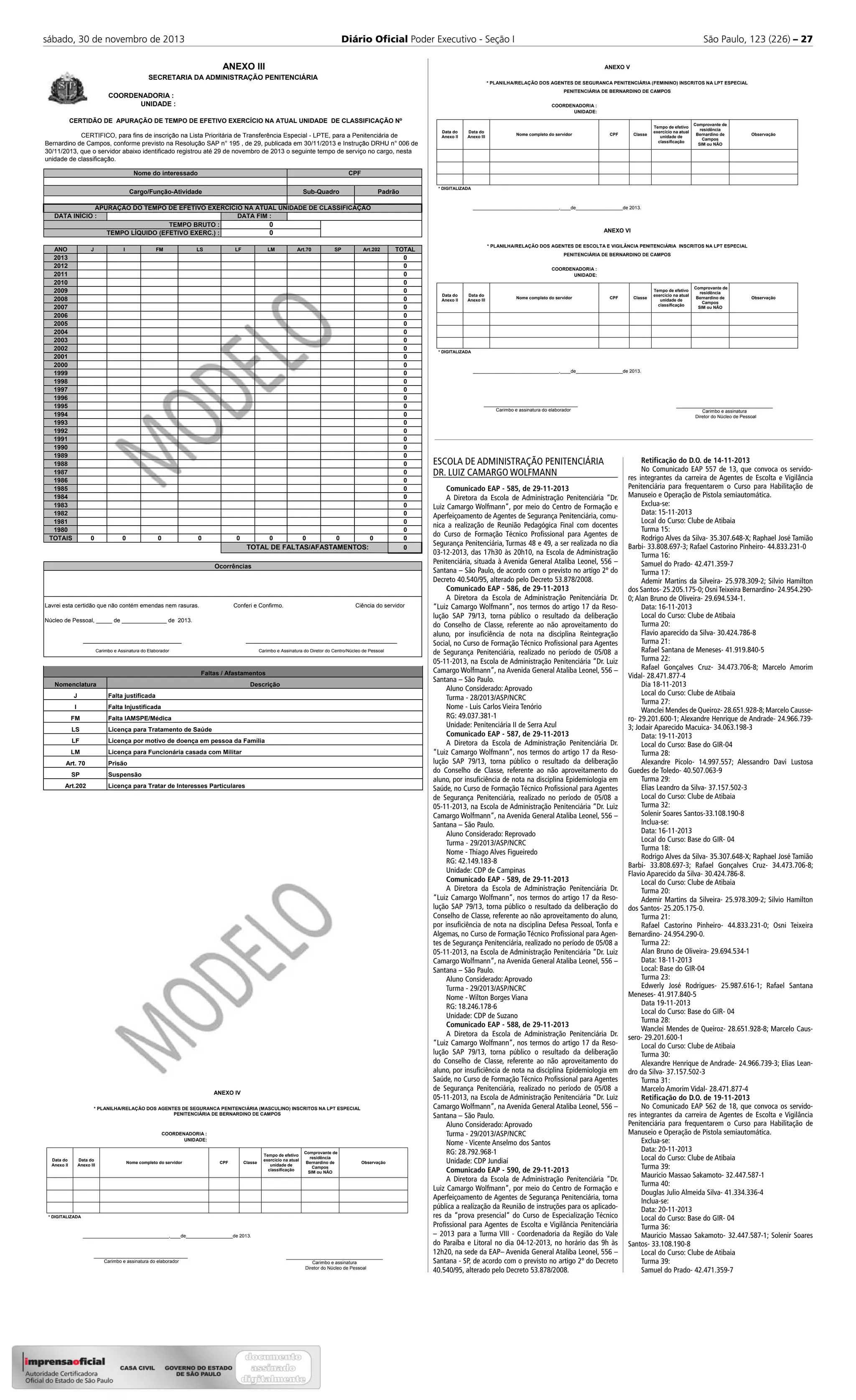 Retificação do D.O. de 19-11-2013