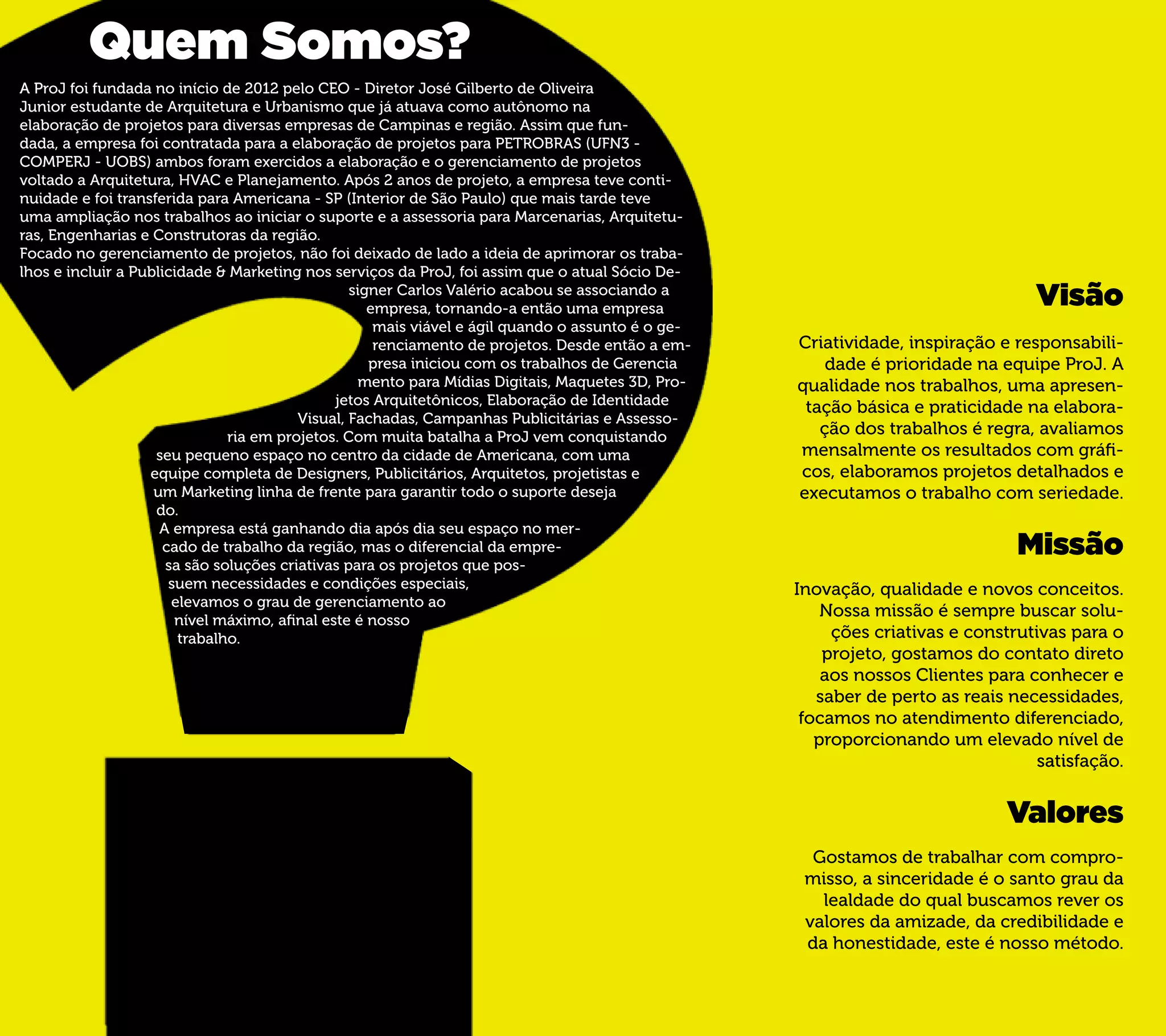 A APAProJfoi fundada em 2012 pelo CEO José Gilbert de Oliveira Junior para fornecer projetos de arquitetura, HVAC e planejamento para a PETROBRAS. A empresa se expandiu para Americana-SP e começou a oferecer suporte e assessoria para marcenarias, arquiteturas e engenharias locais. Posteriormente, associou-se ao sócio Carlos Valério para incluir publicidade, marketing e gerenciamento de mídias digitais entre seus serviços.