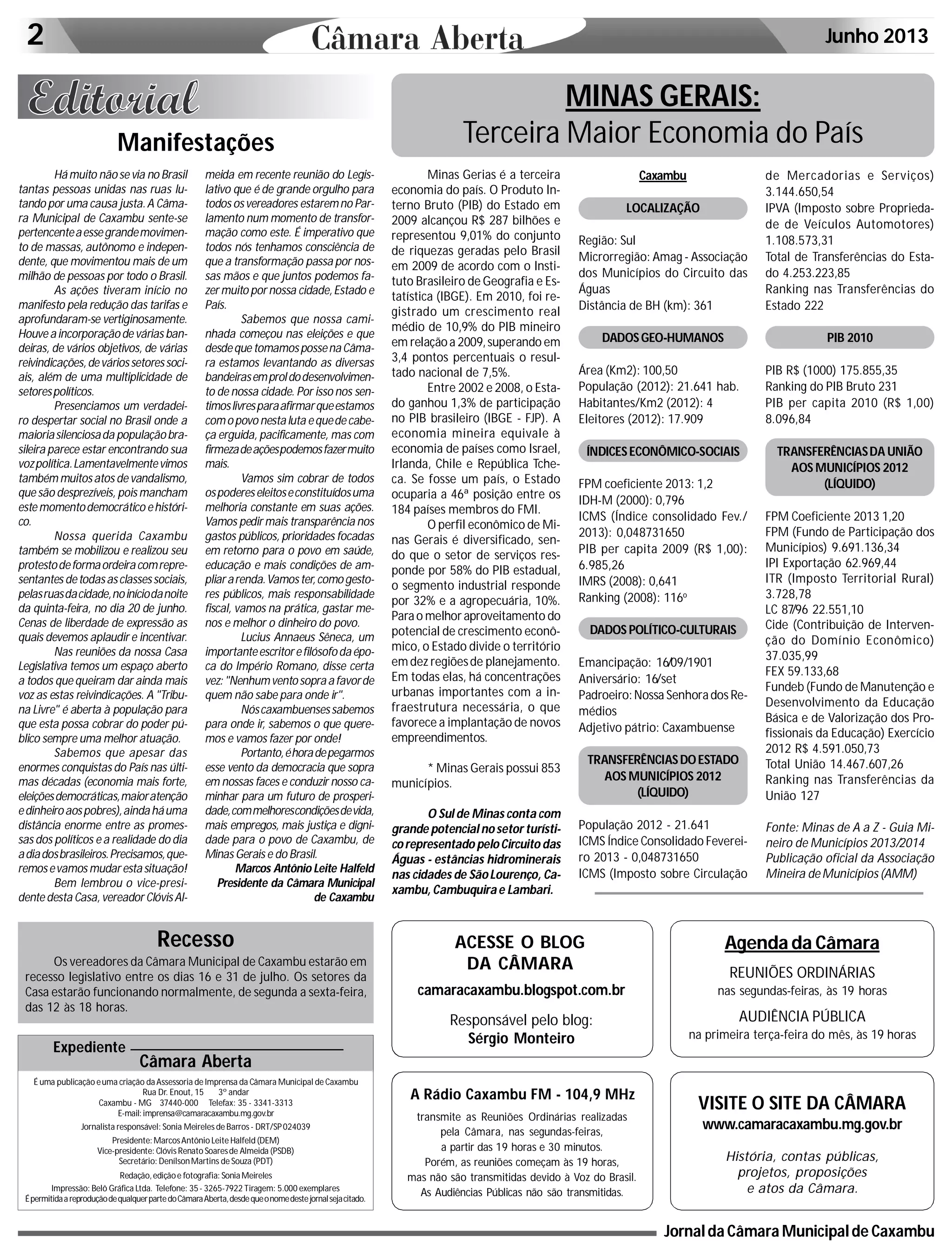 1) Informações sobre a Câmara Municipal de Caxambu, como membros e publicações.