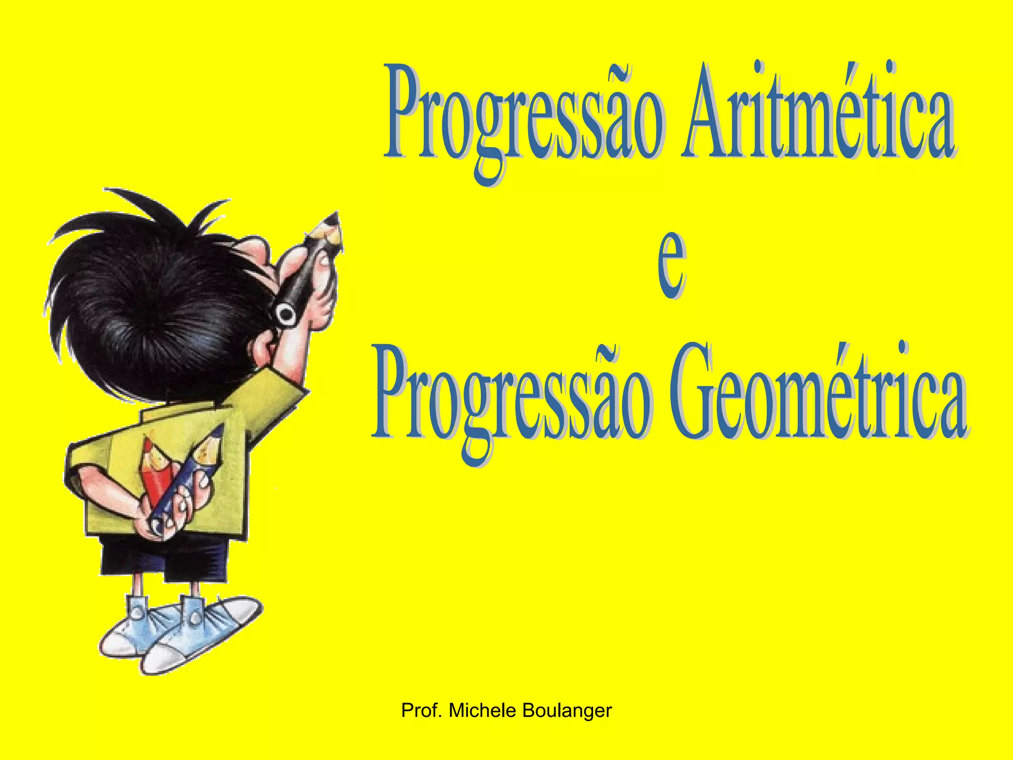 O documento discute progressões aritméticas e geométricas, definindo-as como sequências numéricas onde os termos seguem uma regra de formação precisa. Uma progressão aritmética tem cada termo subsequente igual ao anterior somado a uma razão fixa, enquanto uma progressão geométrica tem cada termo como o anterior multiplicado por uma razão fixa. O texto fornece fórmulas para calcular termos gerais e soma de termos dessas progressões.
