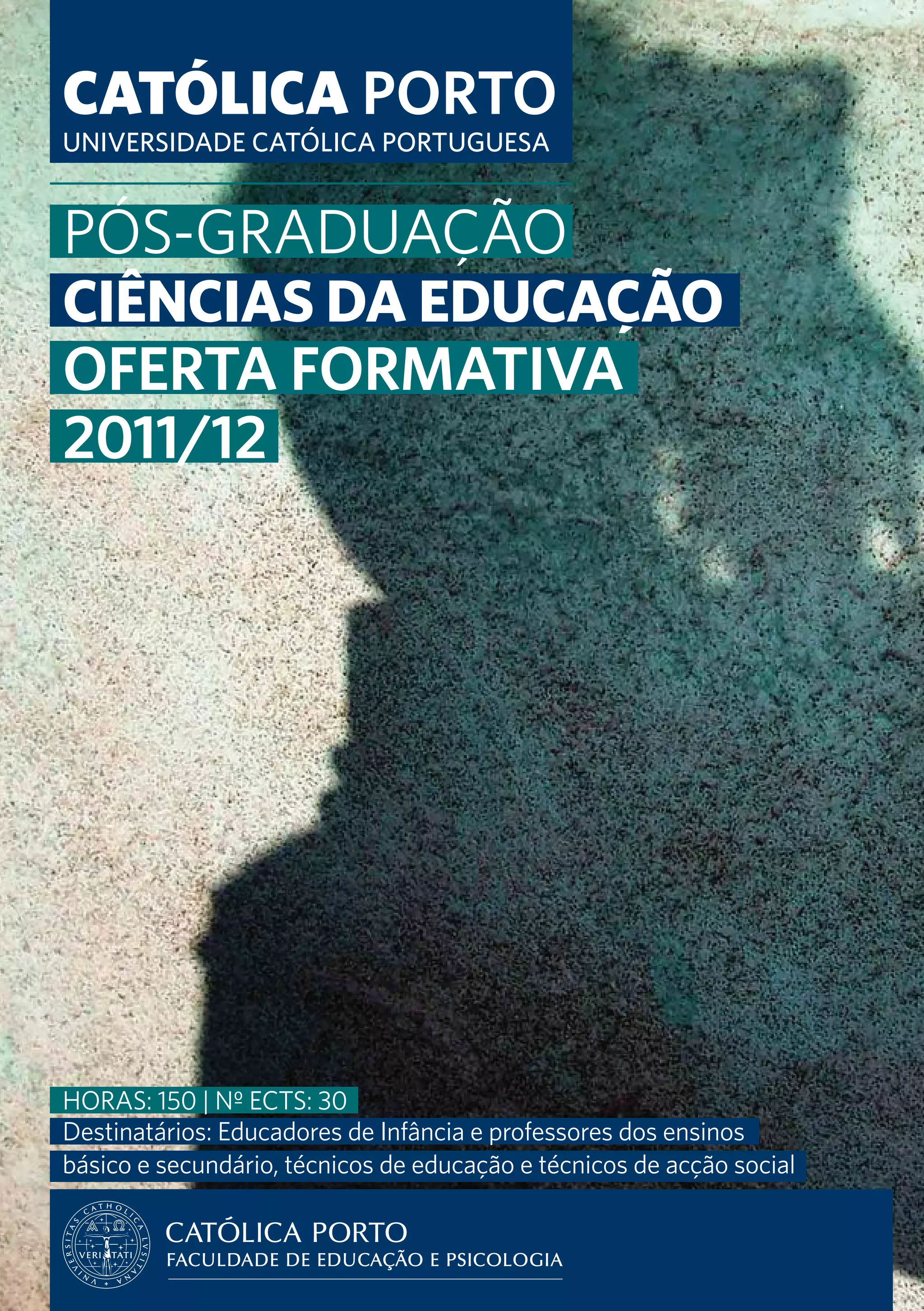 Este documento apresenta a oferta formativa de pós-graduação em Ciências da Educação da Universidade Católica Portuguesa para o ano letivo de 2011/2012, incluindo cursos sobre organização e desenvolvimento curricular, educação de adultos, direção e gestão escolar, tecnologias educacionais e estratégias de ensino. Fornece também informações sobre prazos de candidatura e matrícula.
