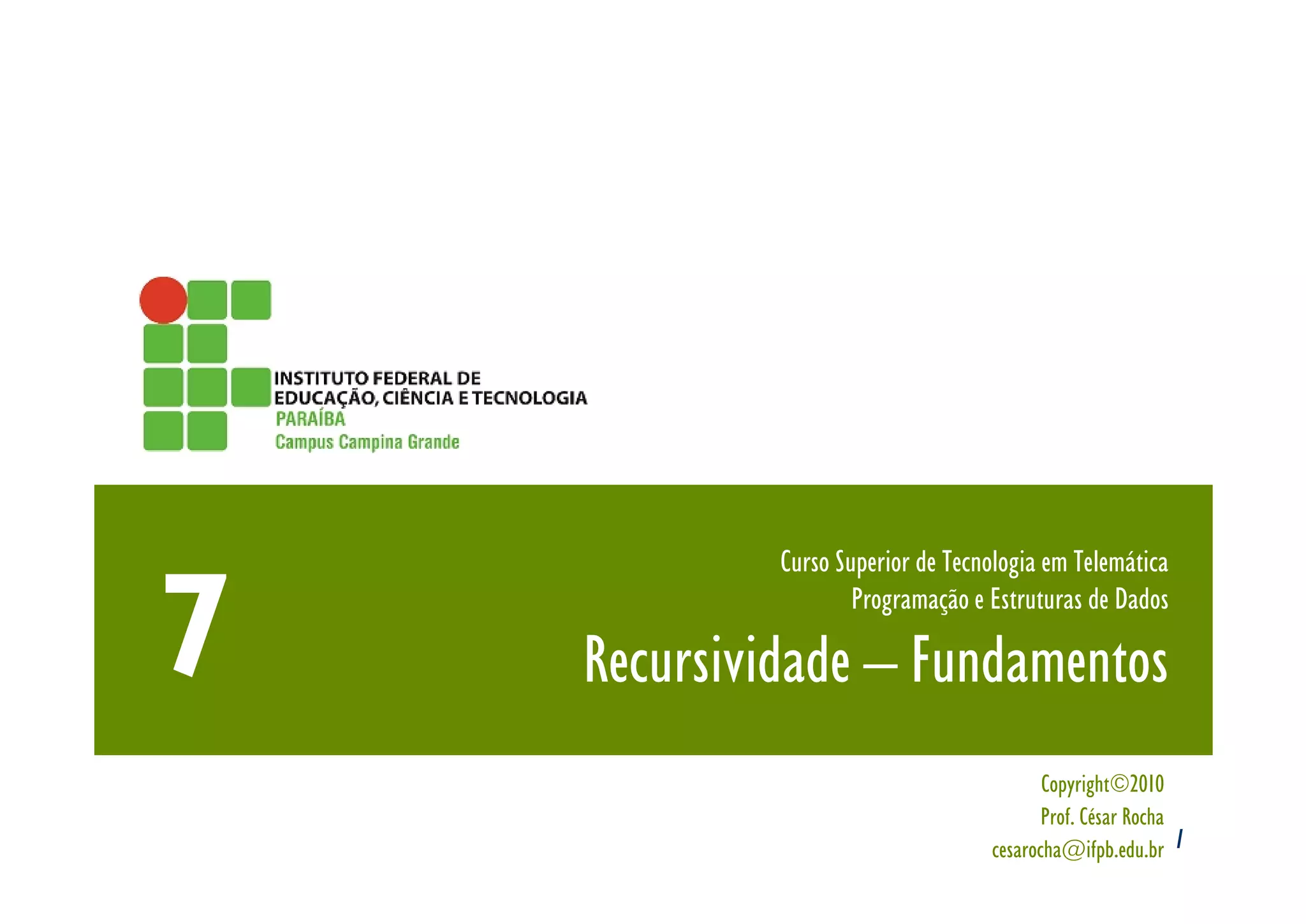 O documento discute recursividade em programação, apresentando seus fundamentos, vantagens e desvantagens. Aborda exemplos como o cálculo fatorial de forma iterativa e recursiva, destacando que a recursividade divide um problema maior em problemas menores de forma recursiva até alcançar um caso base. Também discute quando usar recursividade ou iteração e encerra com exercícios sobre listas encadeadas recursivamente.