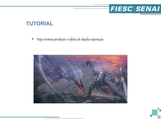 Este documento fornece um tutorial passo-a-passo sobre como criar o efeito de dupla exposição no Photoshop, inserindo duas imagens em camadas e aplicando modos de mesclagem e ajustes como curvas para sobrepor as imagens.
