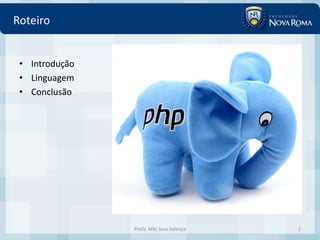 O documento apresenta uma introdução ao PHP, descrevendo sua história, propósito e ambientes de programação. A linguagem PHP permite a criação de páginas web dinâmicas e é compatível com diversos sistemas operacionais e bancos de dados. O documento também explica conceitos básicos de HTML e como a linguagem de scripting do PHP funciona.