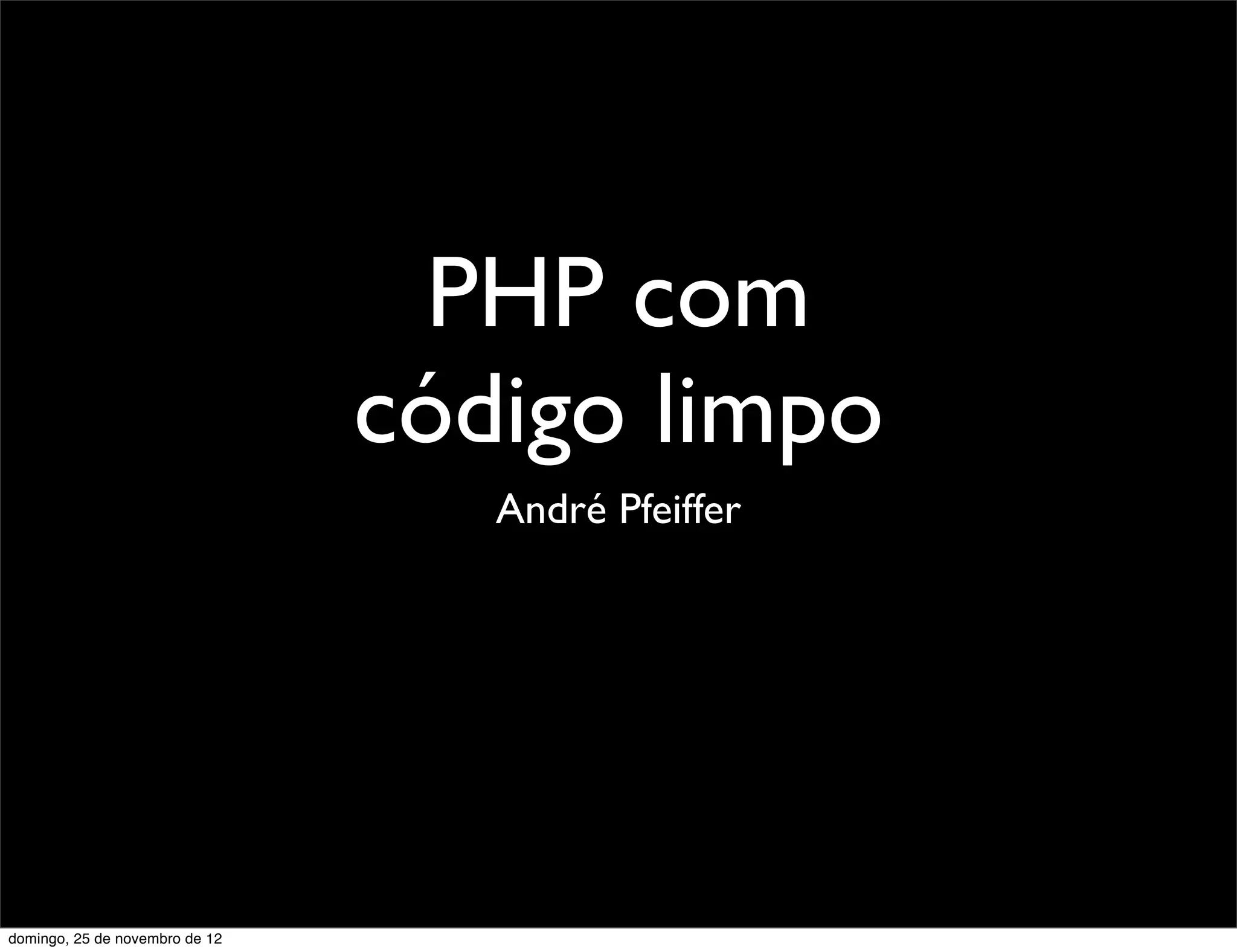 O documento discute princípios de código limpo em PHP, enfatizando a importância de estrutura organizada, nomes descritivos, funções pequenas e uso apropriado de comentários. Também cobre responsabilidades de desenvolvedores profissionais e padrões de codificação como Drupal e PEAR.