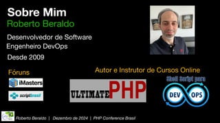 O documento apresenta ferramentas e práticas para garantir segurança e confiabilidade no ciclo de vida de aplicações PHP, abordando linting, análise estática, padronização e testes automatizados. Roberto Beraldo explora soluções para problemas comuns e sugere formas de automação através de pipelines CI/CD e git hooks. A apresentação foi feita na PHP Conference Brasil em dezembro de 2024.