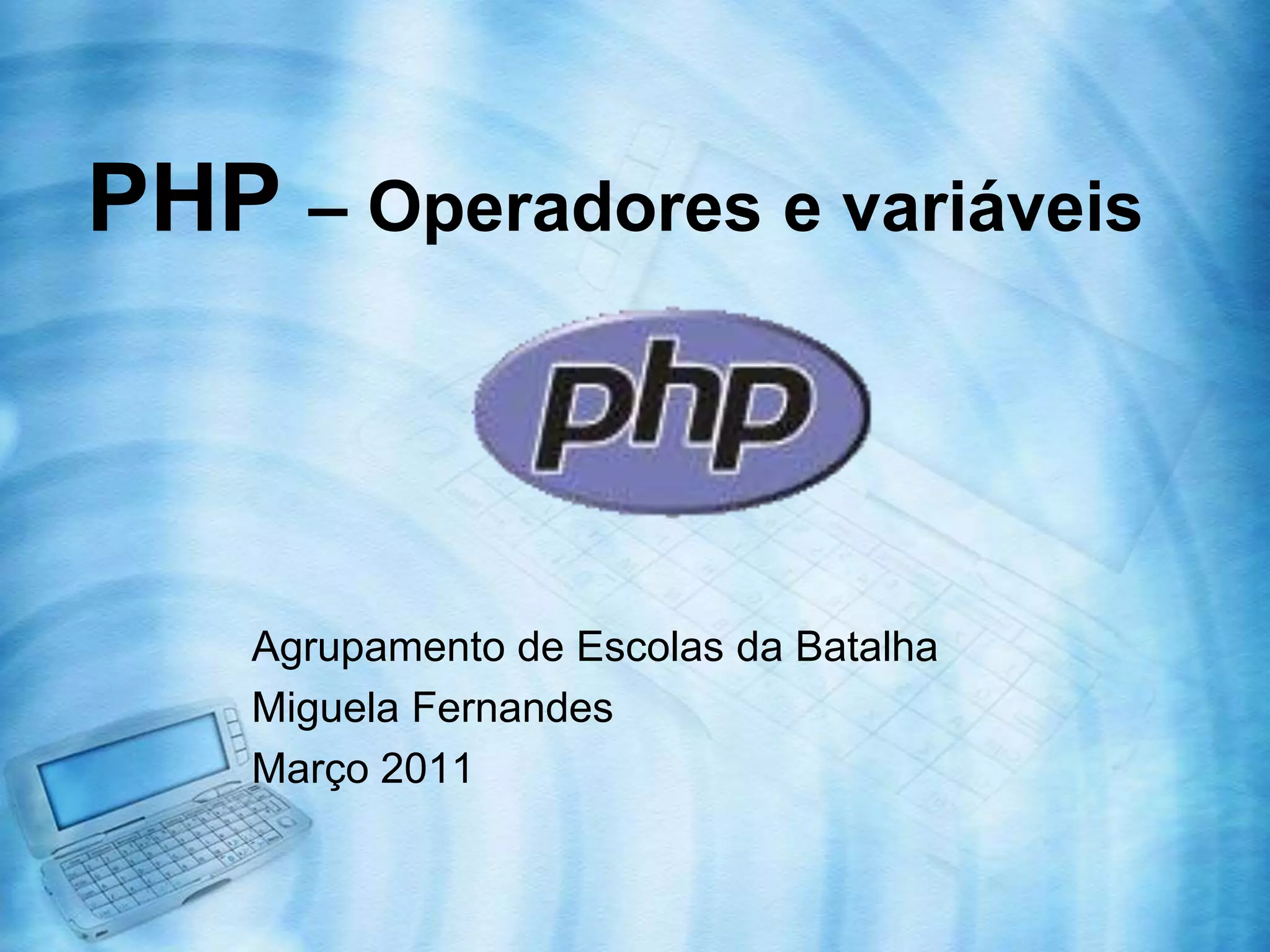 PHP – Operadorese variáveisAgrupamento de Escolas da BatalhaMiguela FernandesMarço 2011