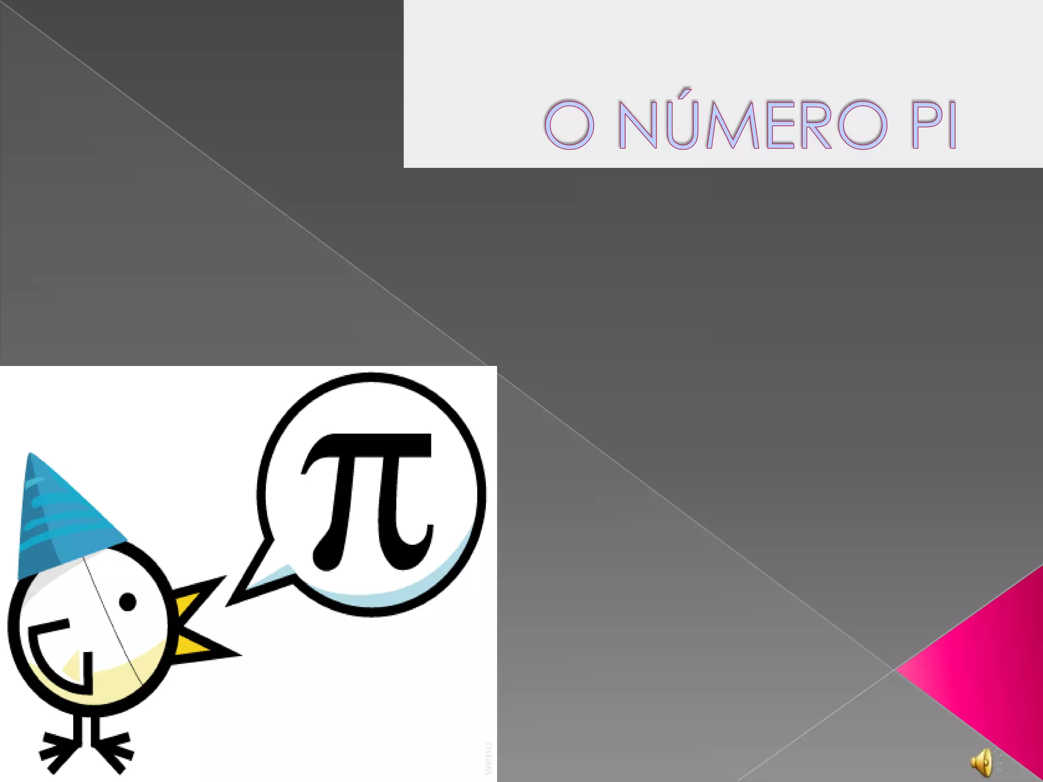 O documento descreve a história e propriedades do número Pi. Começa com um poema sobre Pi e sua natureza infinita e misteriosa. Detalha como Arquimedes foi o primeiro a calcular aproximações de Pi usando polígonos regulares, chegando a 3.1410 < Pi < 3.1428. Também lista curiosidades como Pi representar a razão entre a circunferência e o diâmetro de qualquer círculo e ter casas decimais infinitas e não periódicas.