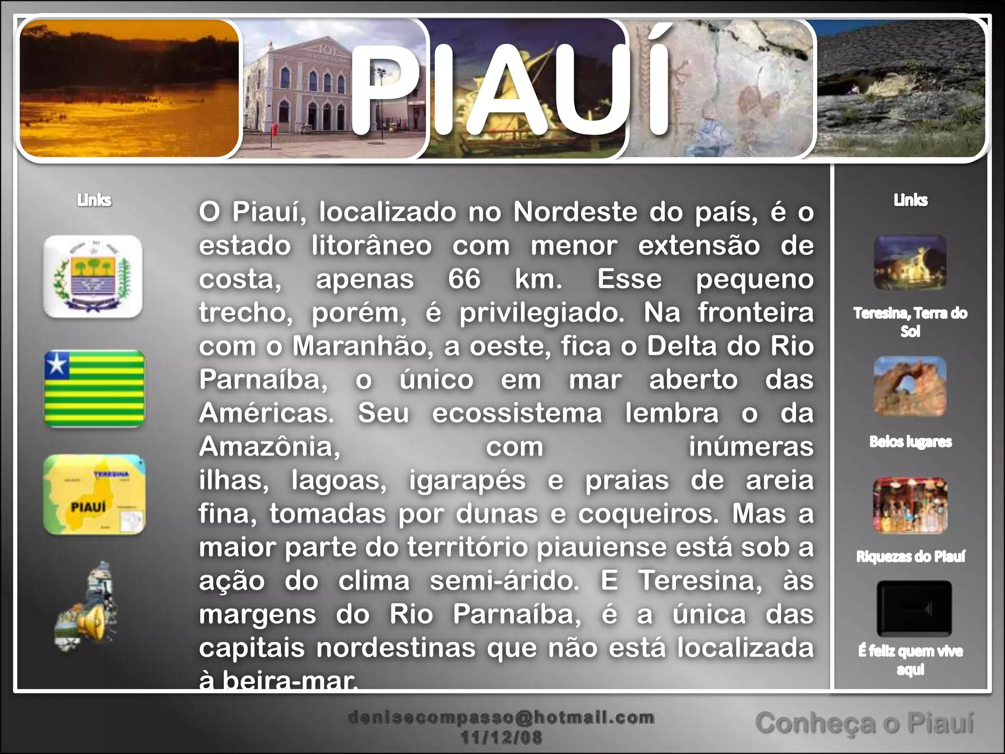 O Piauí é o estado nordestino com a menor extensão costeira, apenas 66 km. Seu Delta do Rio Parnaíba, único em mar aberto das Américas, tem ecossistema semelhante à Amazônia, com ilhas, lagoas e praias de areia fina. A maior parte do Piauí sofre com clima semi-árido e sua capital, Teresina, não fica à beira-mar, ao contrário das demais capitais nordestinas.