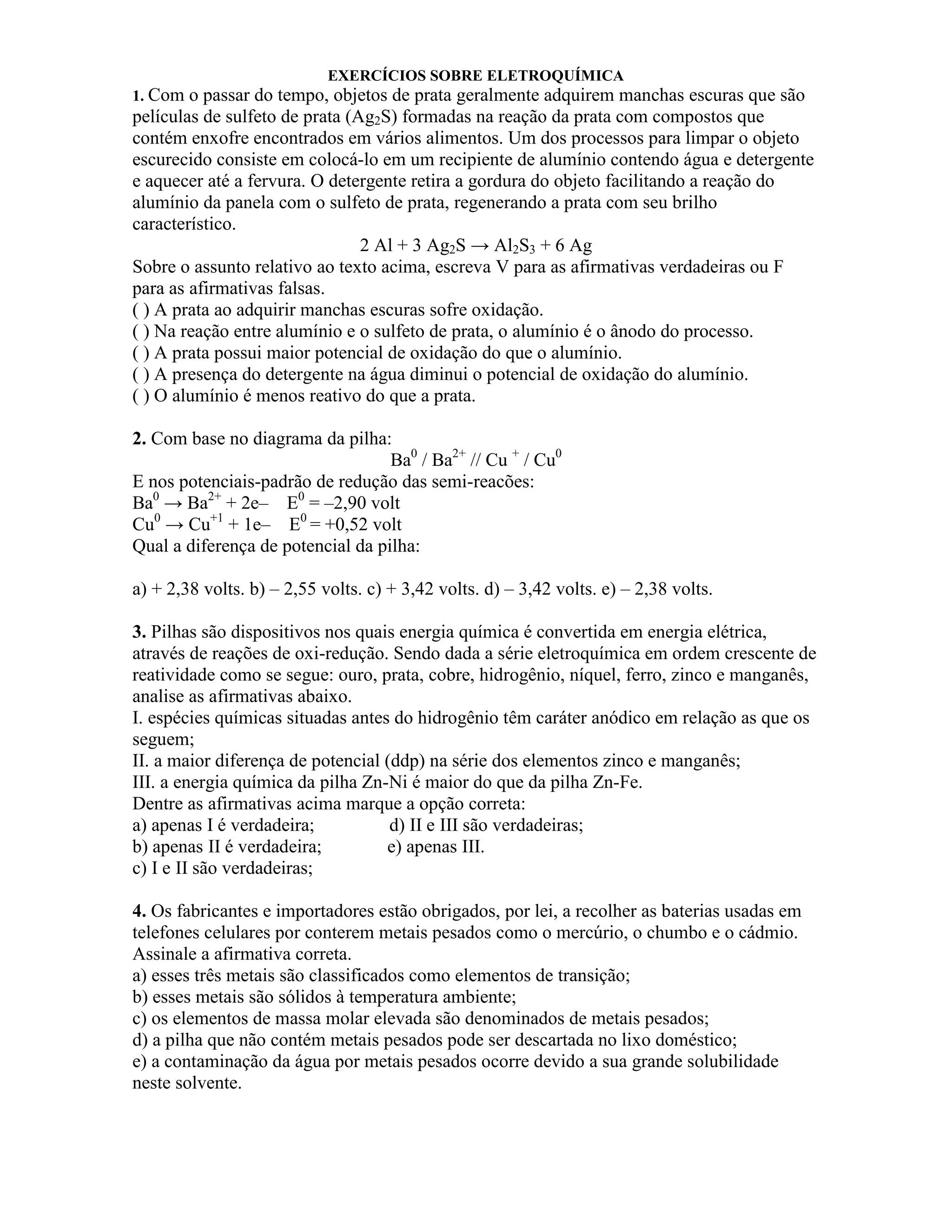 O documento descreve como objetos de prata escurecidos podem ser limpos colocando-os em água e detergente com uma panela de alumínio, aquecendo até ferver. A reação do alumínio com o sulfeto de prata na superfície regenera a prata com seu brilho característico.