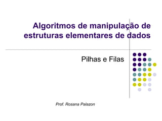 O documento discute pilhas e filas como estruturas de dados lineares, definindo suas propriedades e operações básicas. É apresentada a implementação de pilhas e filas usando vetores em C, com funções como push(), pop() e menus interativos para testar as estruturas. Listas encadeadas também são discutidas como alternativa de implementação.