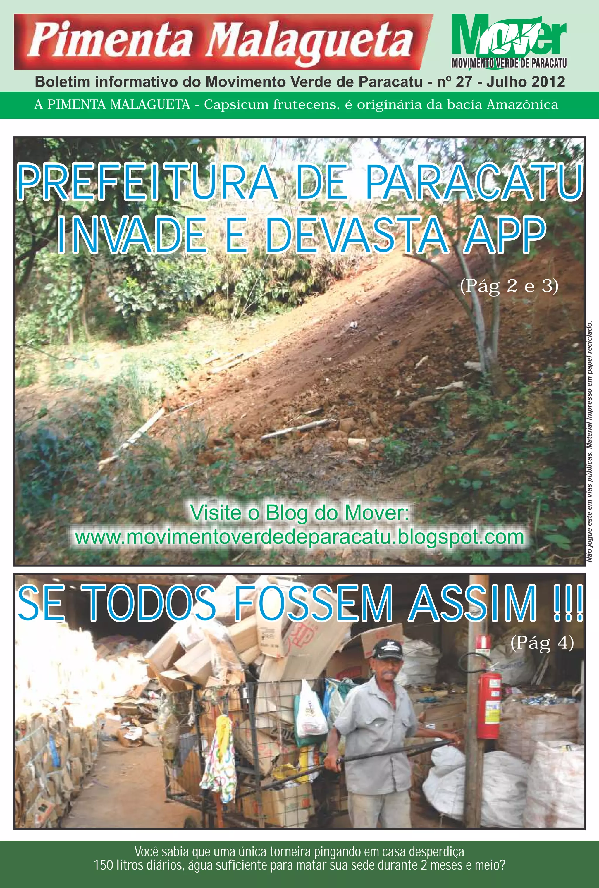 3) O movimento Verde de Paracatu solicita recursos à prefeitura para recuperação do córrego Pobre, mas os recursos não foram liberados.