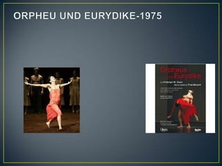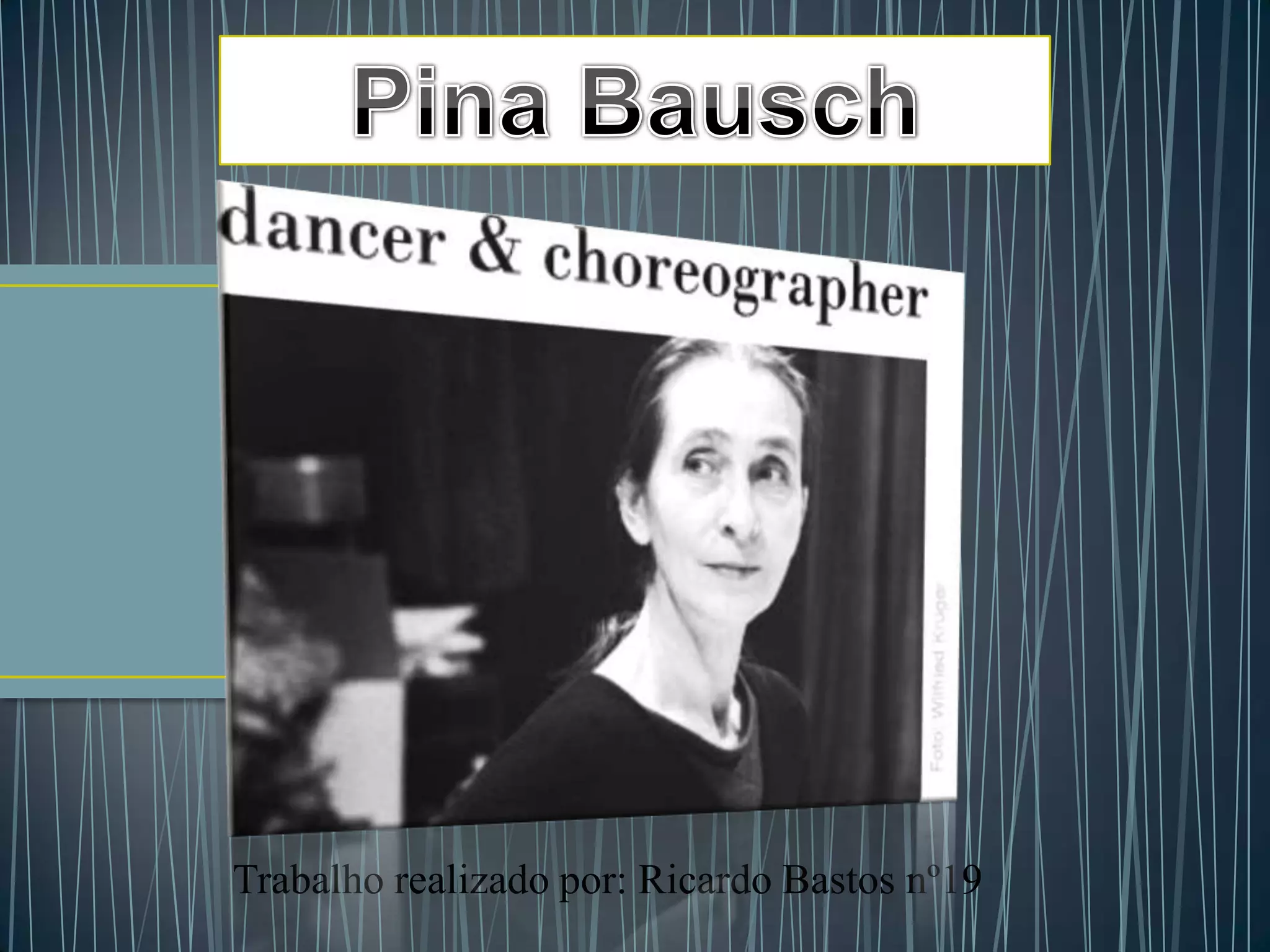 Pina Bausch (1940-2009) foi uma coreógrafa e bailarina alemã considerada uma pioneira da dança pós-moderna. Formou-se em dança na Alemanha e Estados Unidos e fundou o Tanztheater Wuppertal Pina Bausch em 1973, onde desenvolveu coreografias que misturavam dança, teatro e temas humanos como amor e tristeza. Suas obras influenciaram o desenvolvimento da dança internacional e ela se tornou um ícone da dança pós-moderna.