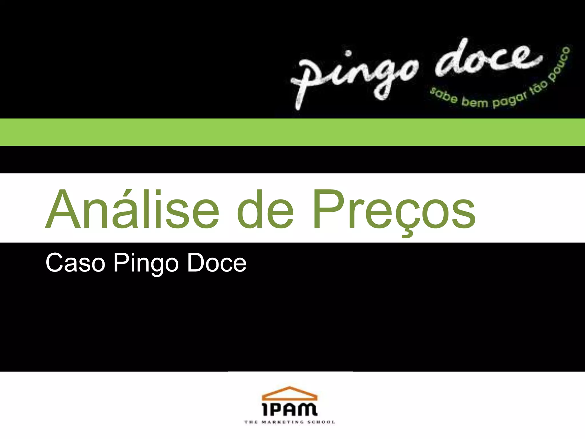 O documento analisa o caso da empresa Pingo Doce, parte do Grupo Jerónimo Martins. Inclui uma introdução da empresa, análise da matriz BCG, análise PEST, principais concorrentes, análise SWOT, segmentação psicográfica dos clientes, posicionamento de marcas, formas de comunicar preços e fatores decisivos para os clientes.