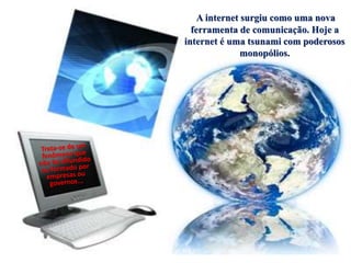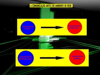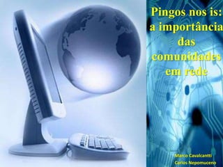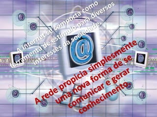 O documento discute a importância das comunidades em rede na internet, como elas promovem a disseminação de informações e a produção de conhecimento de forma colaborativa. As comunidades em rede são descritas como o futuro da inovação e o espaço online permite novas formas de comunicação multidirecional e interativa entre pessoas distantes.