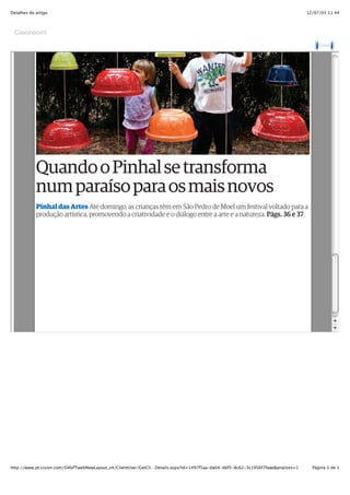 O artigo descreve um festival de artes em São Pedro de Moel, Portugal, que ocorre até domingo e é voltado para crianças, promovendo a criatividade e o diálogo entre arte e natureza por meio de atividades artísticas.