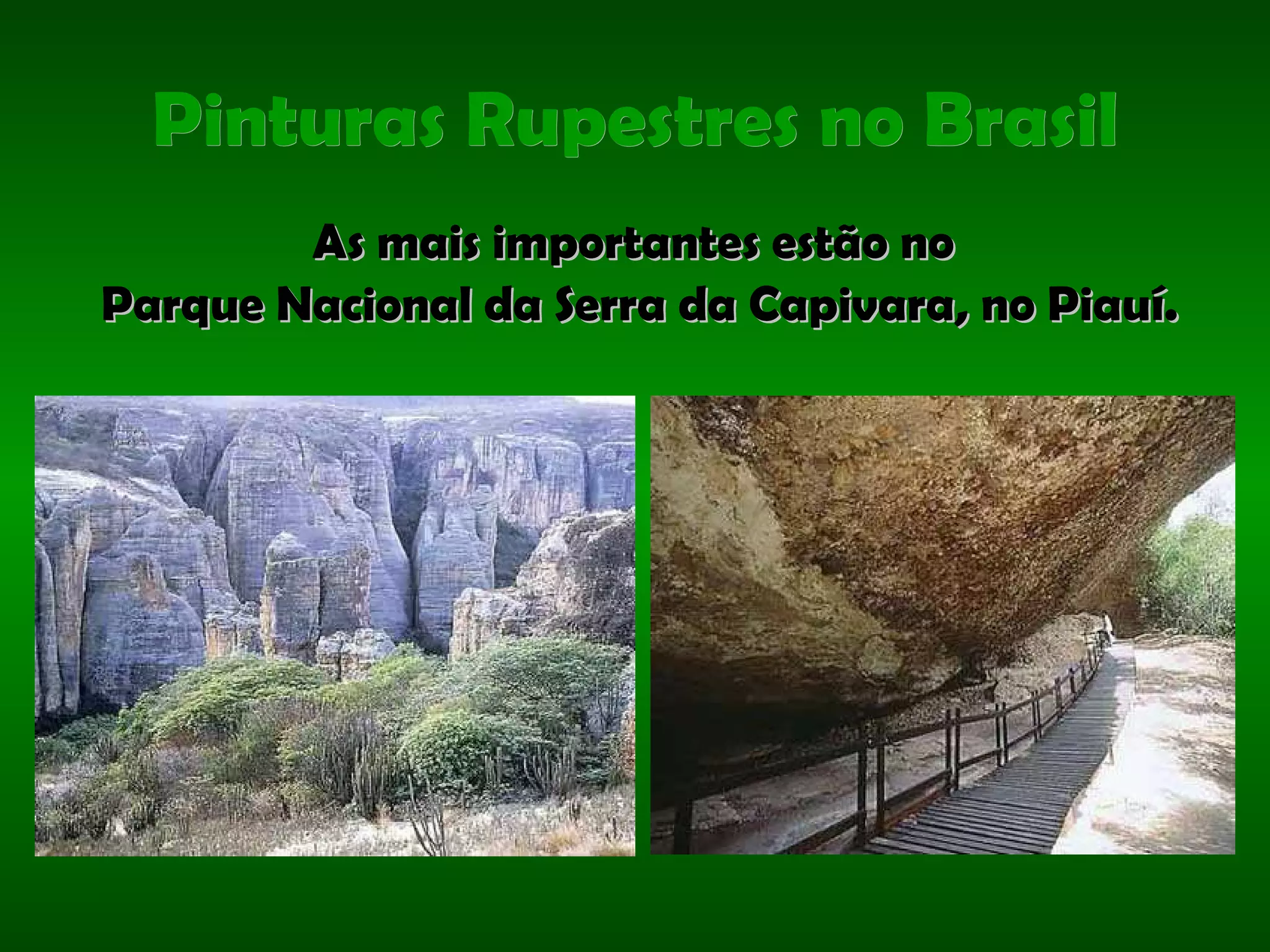 As mais importantes pinturas rupestres no Brasil estão localizadas no Parque Nacional da Serra da Capivara no Piauí. O documento também menciona pinturas rupestres na França, Espanha, África e Argentina.