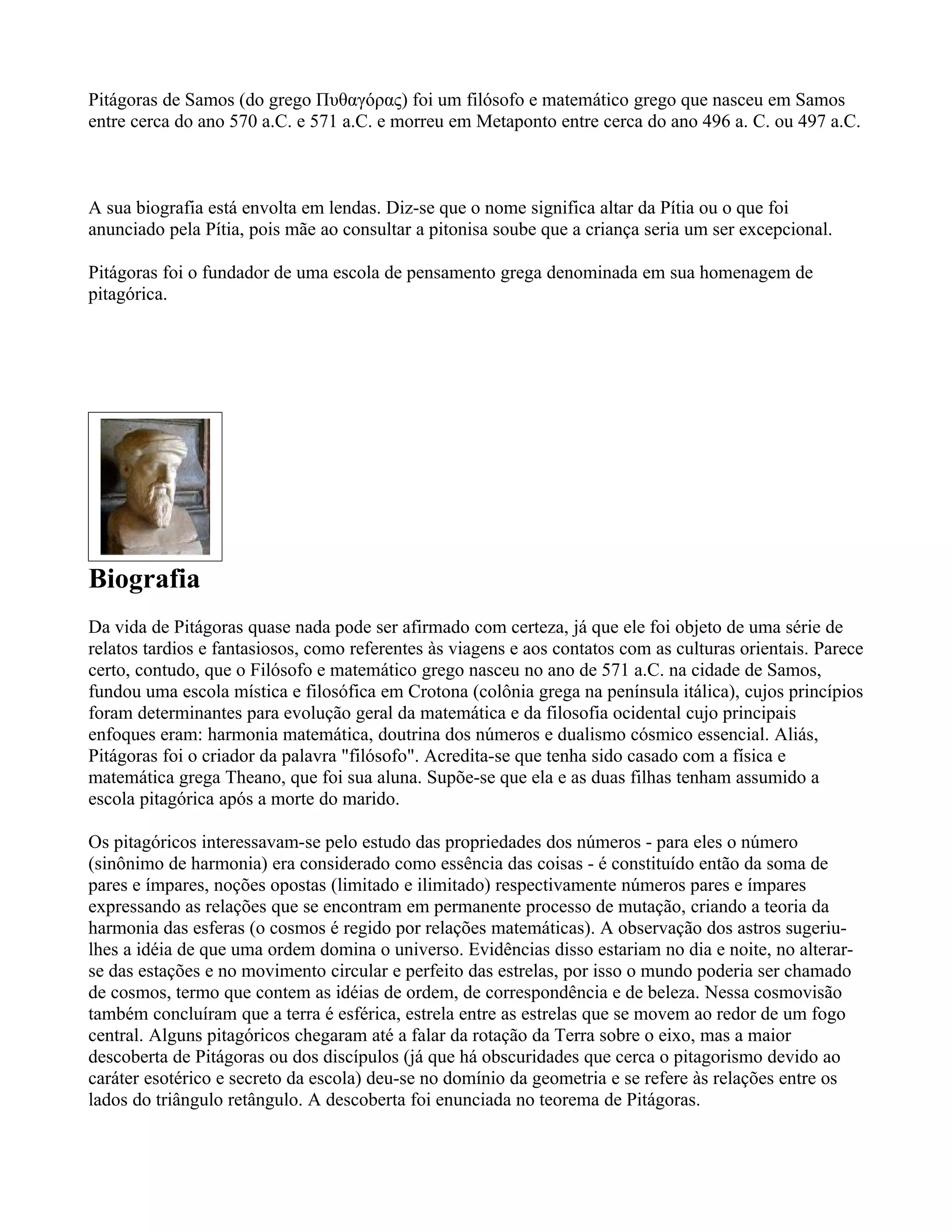 Pitágoras de Samos(do grego Πυθαγόρας) foi um filósofo e matemático grego que nasceu em Samos