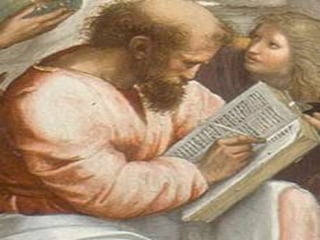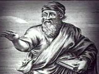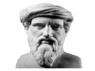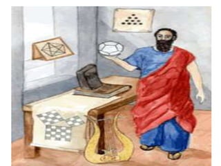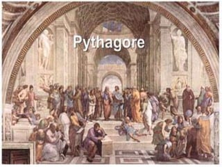 Pitágoras foi um matemático e filósofo grego do século VI a.C. que fundou uma escola em Crotona, na Itália, onde ensinou sobre matemática, música e astronomia. Ele fez descobertas fundamentais sobre os números e suas relações, incluindo o famoso Teorema de Pitágoras sobre triângulos retângulos. Pitágoras também estudou no Egito e na Mesopotâmia e trouxe novos conhecimentos para a Grécia.