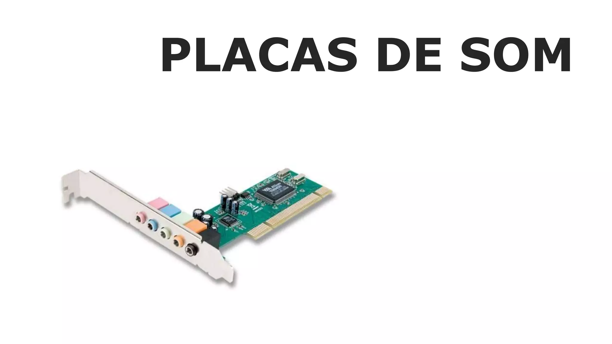 A placa de som converte sinais digitais em sons audíveis, permitindo que o computador reproduza música, efeitos sonoros e transmita áudio através de alto-falantes ou fones de ouvido. Ela possui entradas para microfone, linha de entrada e saída de áudio.