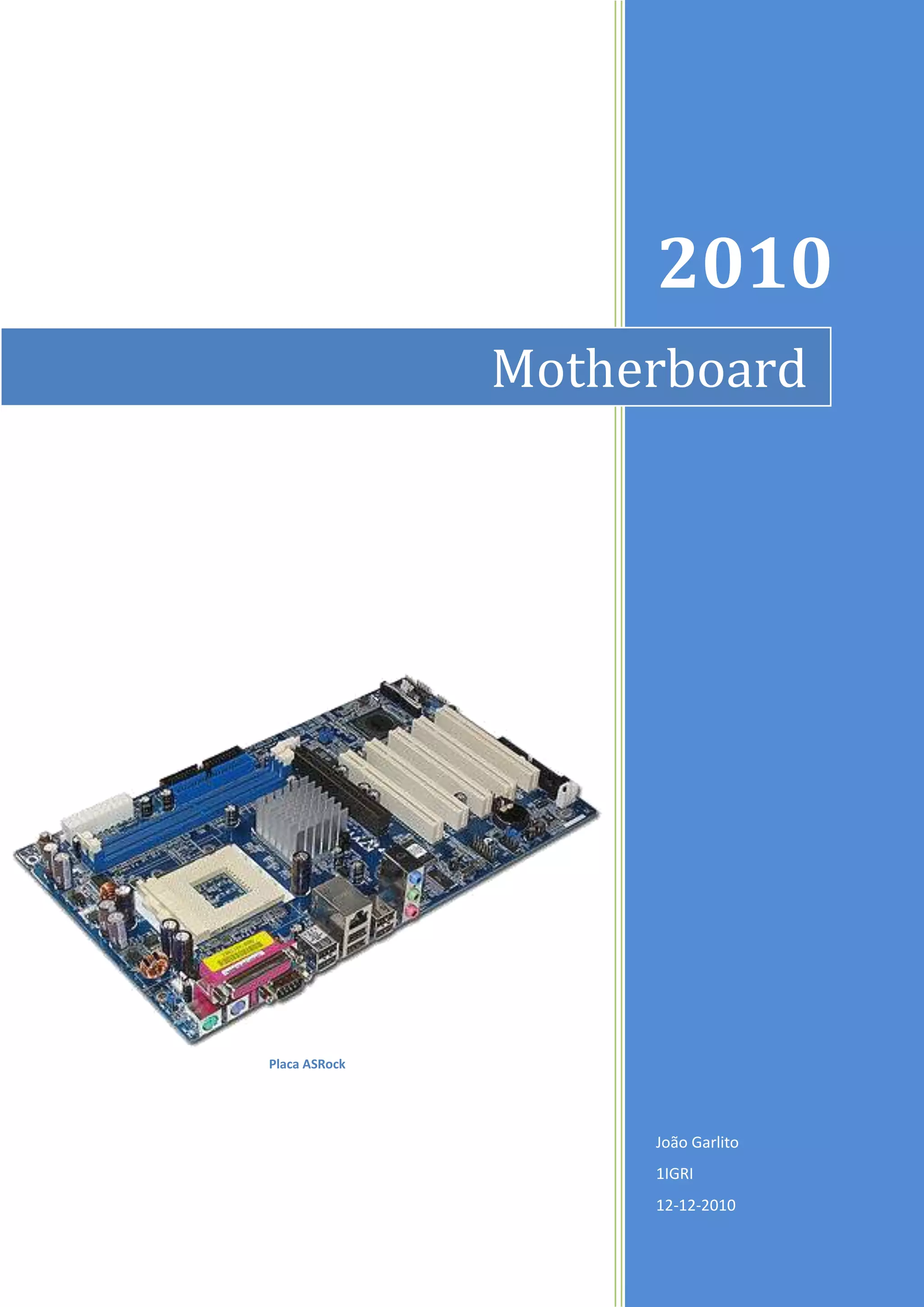 Este documento descreve os principais tipos de placas-mãe, suas características e componentes. Discute placas AT, ATX, BTX, LPX e ITX, explicando as diferenças em tamanho, layout e funcionalidade. Também explica os componentes centrais de uma placa-mãe típica, incluindo BIOS, bateria e chipset.