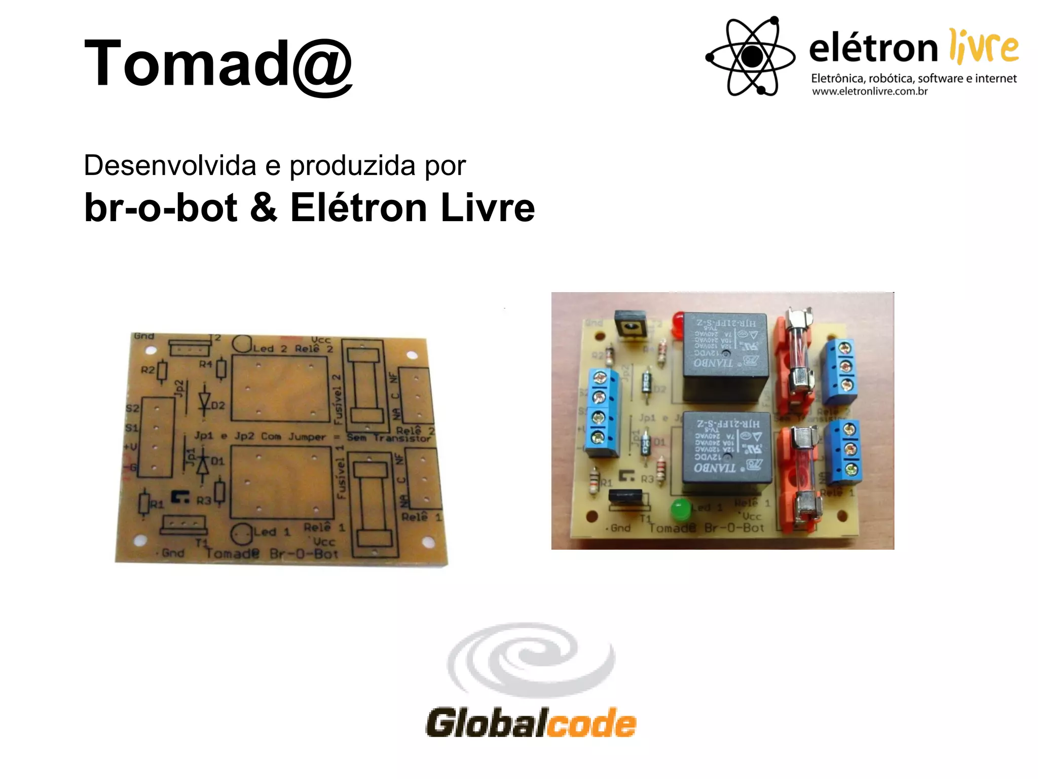Este documento fornece instruções para construir um controlador de dois relés usando uma placa Arduino. Ele lista os materiais necessários, explica como os relés funcionam e fornece um código de exemplo para ligar e desligar os relés alternadamente a cada segundo.