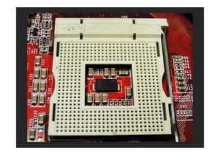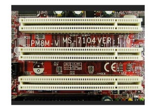 O documento discute os principais componentes de uma placa-mãe, incluindo barramentos, slots de memória, conectores SATA e PCI, e outros componentes essenciais como o chipset e BIOS. A placa-mãe é responsável por conectar e permitir a comunicação entre todos os componentes de um computador.
