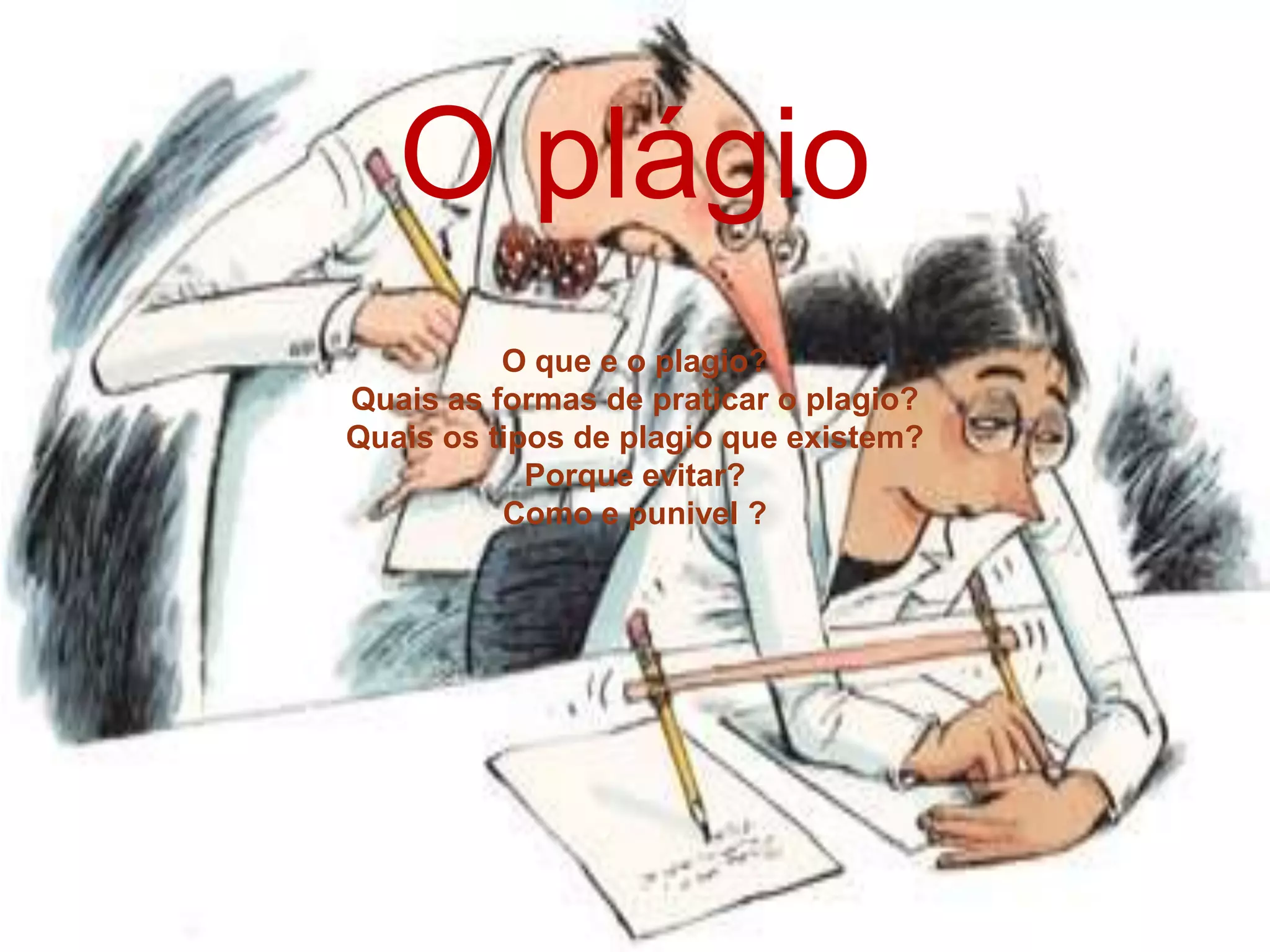 O documento discute o que é plágio, as formas de cometê-lo e os tipos existentes. Explica que plágio é apresentar trabalho intelectual de outra pessoa como seu, sem dar crédito. Detalha os tipos de plágio direto, parcial, conceitual e mosaico, além do autoplágio. Aponta formas comuns de plágio e porque deve ser evitado, já que pode ser punido com prisão ou multa.