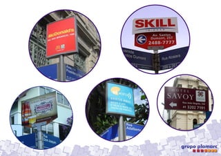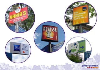 O documento apresenta uma proposta de anúncios em placas de rua para a Copa do Mundo de 2014 no Brasil, destacando as vantagens de anunciar nas ruas onde os torcedores estarão e propondo circuitos de placas nas cidades sedes de Guarulhos, Curitiba e Rio de Janeiro.