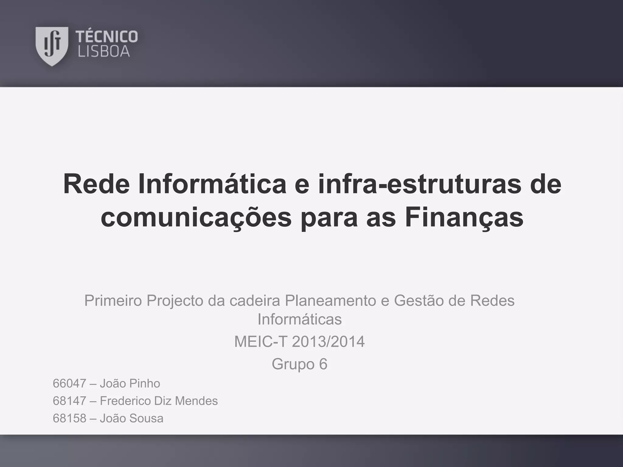 Este documento descreve o projeto de rede informática e infraestruturas de comunicações para as Finanças Portuguesas. Ele inclui uma análise detalhada dos requisitos, do planejamento da rede e do dimensionamento dos recursos necessários. O projeto visa conectar o Ministério das Finanças, centros distritais e repartições de todo o país para fornecer serviços como internet, email e videoconferência de forma segura e escalável.