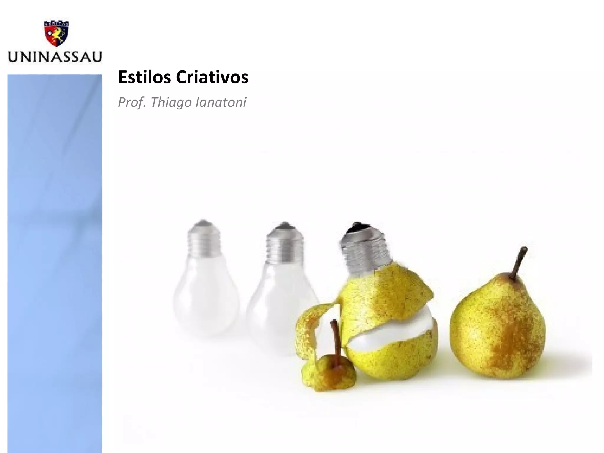 O documento discute seis estilos criativos de publicidade, categorizando-os em três grupos: funcionalidade, simbólicos e experimentais, com ênfase na proposição única de venda (USP) e na construção de identidade de marca. Exemplos incluem publicidade ressonante e emocional, abordando como marcas podem se destacar em mercados competitivos. O caso da sorveteria Gellato's ilustra a aplicação de um estilo criativo para ampliar o reconhecimento da marca através da qualidade artesanal e comunicação moderna.